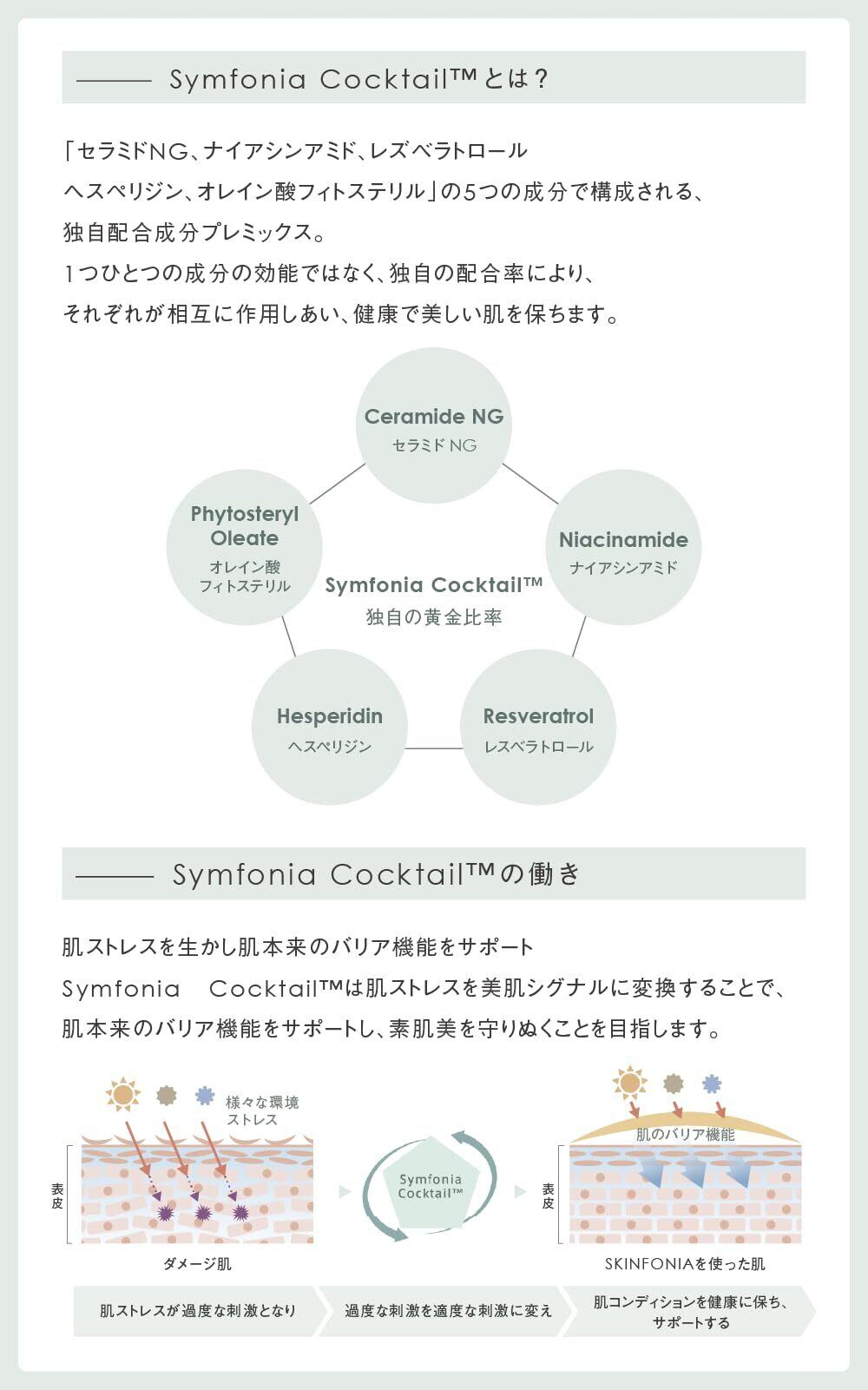 【独自の美容配合プレミックス】Symfonia Cocktail(ナイアシンアミド、セラミドNG、ヘスペリジン、レスベラトロール、オレイン酸フィトステリル)を配合