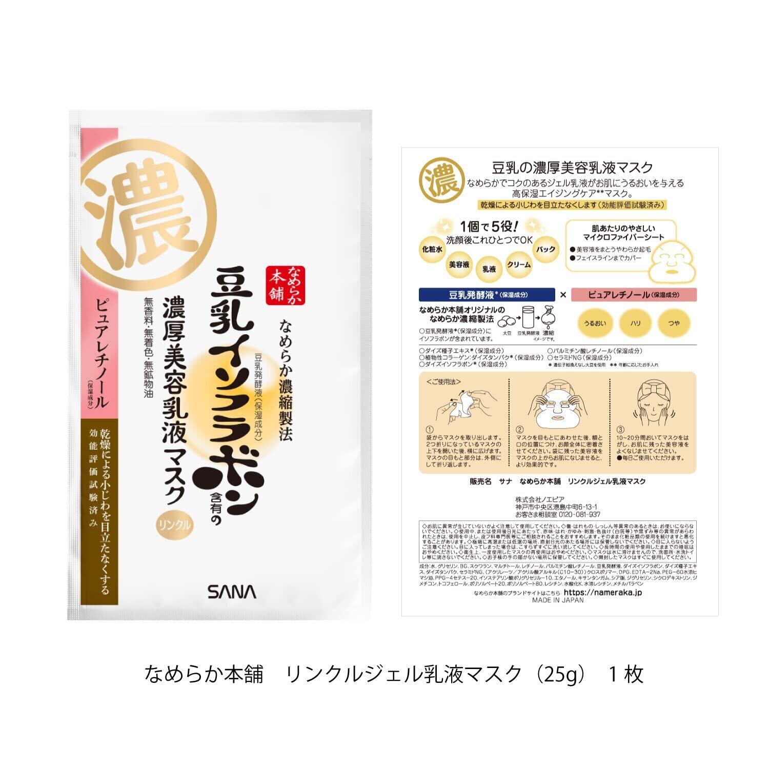 本品と同量!お得なつめかえ用 高保湿オールインワン 大人のハリ 弾力感 豆乳イソフラボン含有のエイジングケアオールインワンジェルクリーム 無香料・無着色・無鉱物油 エイジングケア:年齢に応じたお手入れ 豆乳スキンケア市場+第1位 +豆乳成分配合のセルフスキンケア市場 店頭売上金額2020年 小売店5社POSデータ 1個で5役! 濃厚ジェルクリームで、うるおいを閉じ込めてハリのあるお肌へ。 ○洗顔後これ1つでOK! 化粧水 美容液 乳液 クリーム パック効果 乾燥による小じわを目立たなくする 効能評価試験済み うるおい成分:豆乳発酵液*(保湿)×ハリ肌成分:ピュアレチノール(保湿) [国産丸大豆「たまほまれ」使用] なめらか本舗「エイジングケアライン」オリジナルの豆乳発酵液(保湿成分)は、国内で栽培された大豆「たまほまれ」を丸ごと使用して作られています。 なめらか濃縮製法でつくるオリジナルの豆乳発酵液 ○豆乳発酵液(保湿成分)にはイソフラボンが含まれています。 ○ダイズ種子エキス*(保湿成分) ○植物性コラーゲン:ダイズタンパク*(保湿成分) ○ダイズイソフラボン*(保湿成分) ○パルミチン酸レチノール(保湿成分) ○セラミドNG(保湿成分) *遺伝子組換えなし大豆を使用。