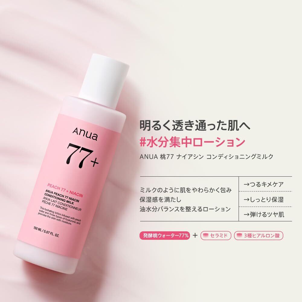 ANUA(アヌア)桃77ナイアシンコンディショニングミルク150ml 乳液 肌トーン水光肌 ツヤ肌 水分保湿 乾燥肌 混合肌 peach niacin lotion スキンケア 韓国コスメ 【公式・正規品】
