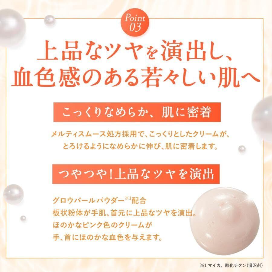 Wの有効成分を配合した濃厚なクリームが手肌や首元のシワを改善し、乾燥小じわ※1にもアプローチ。