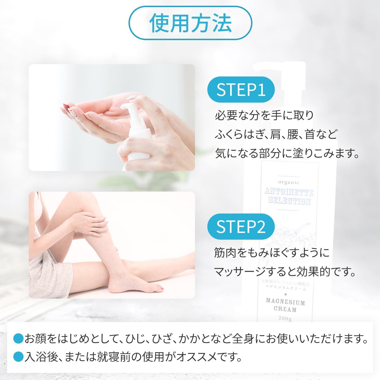 3種のヒアルロン酸配合 アントワネットセレクション マグネシウムクリーム 200g 大容量 エコノミー症候群対策 固まった筋肉をほぐす 筋肉を柔らかくする 介護 立ち仕事 乾燥肌