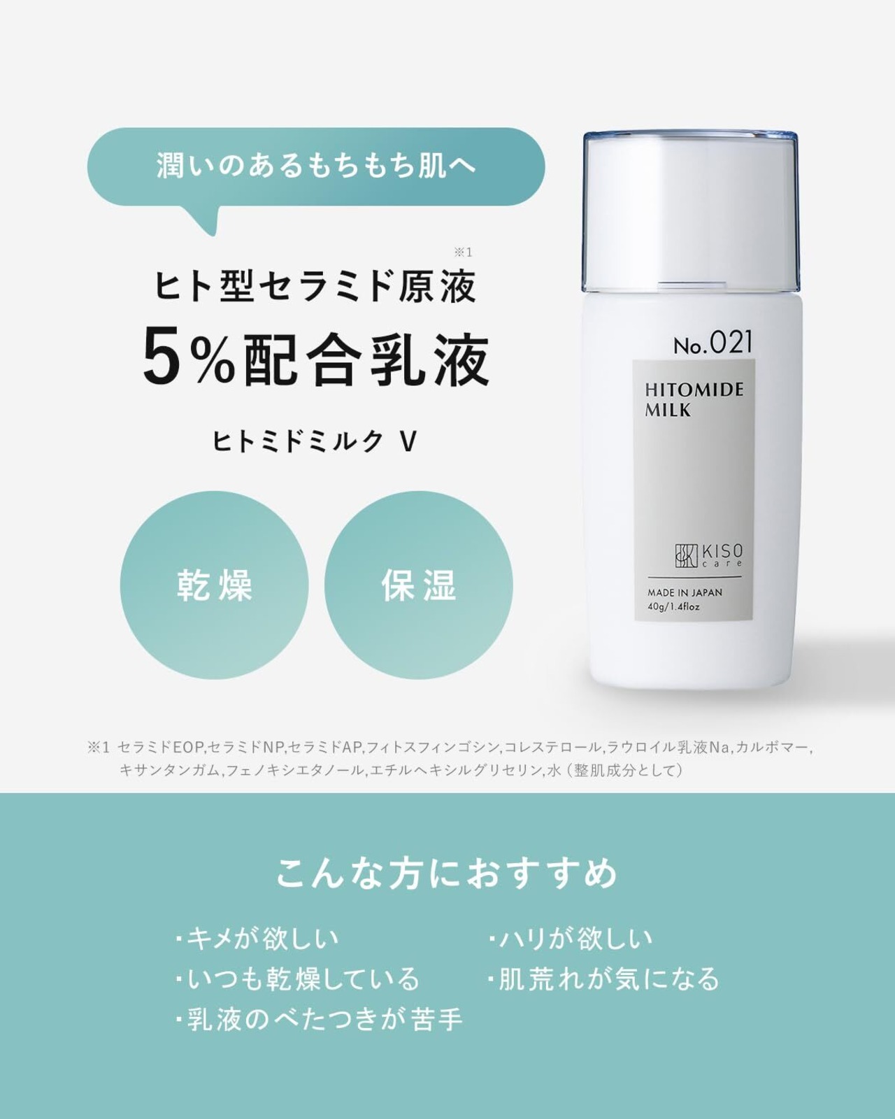 KisoCare [No.021] ヒトミドミルク V 40g ヒト型セラミド 原液5% 乳液 -シットリしているのにべたつかずサラサラとしたつけ心地の良い使用感-