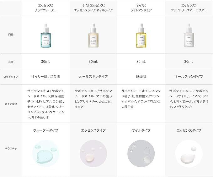 有効成分 サボテンエキス / サボテンシードオイル / ヒマワリ種子油 / ホホバオイル