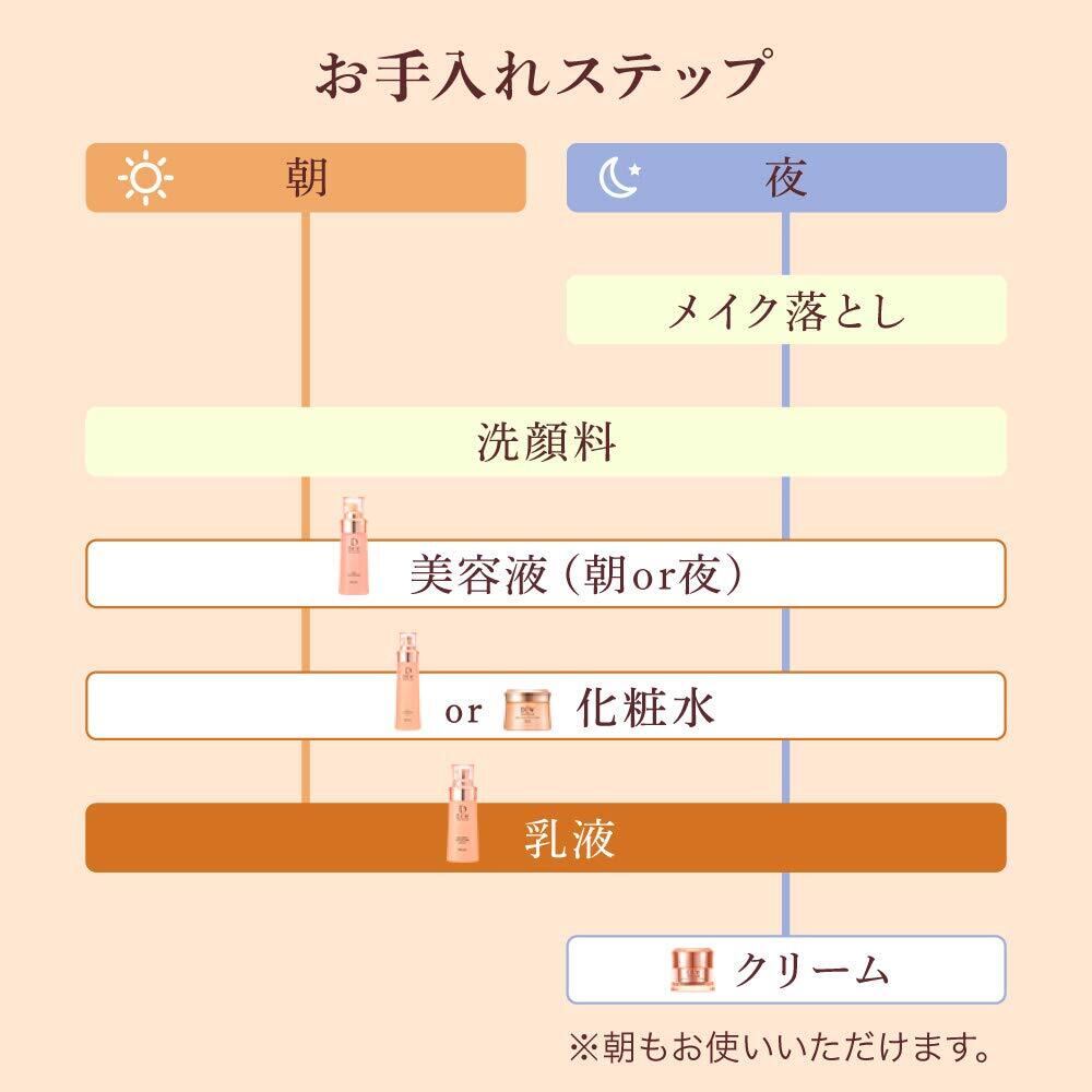 <ご使用法> ●使いはじめは中身がでるまでポンプを数回押してください。 ●化粧水でお肌を整えたあと、手のひらに、ポンプ1押し分をとり、お顔全体になじませてください。 〈つけ替え用の交換法〉 (1)使い終わった容器の下の部分をもち、ポンプを回してはずしてください。 (2)新しいつけ替え用のキャップをはずし、ポンプを差し込んでしっかりしめてください。 〈つけ替えに関するご注意〉 ●ポンプは洗わずに、そのままセットしてください。 ●ポンプをつけ替える際、つけ替え用の口元に中身がつかないようにご注意ください。付着した場合は、ティッシュペーパーなどできれいにふき取ってください。 ●ご使用済の容器に残った中身を、移し替えないでください。 ●中身の品質を保つため、DEW スペリア エマルジョンコンセントレート さっぱり・しっとり・とてもしっとりそれぞれのポンプ以外は使用しないでください。