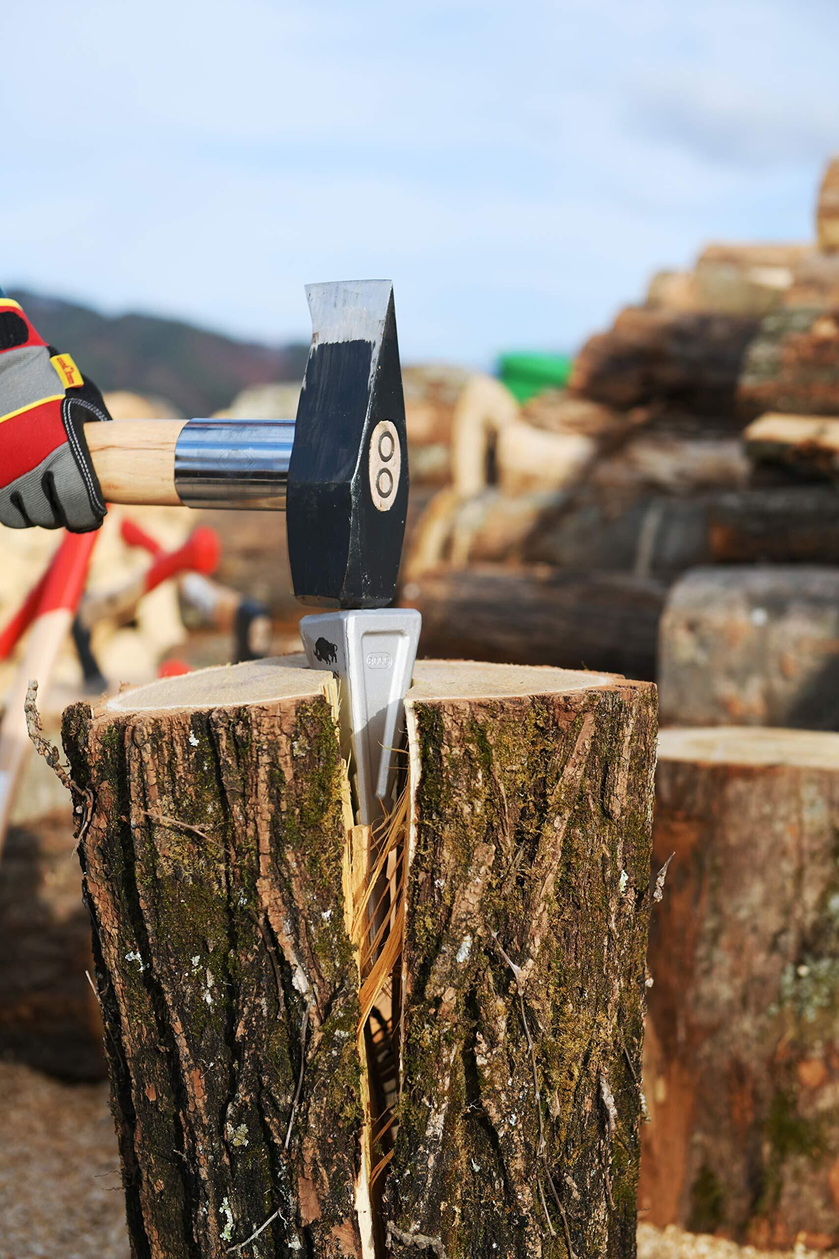 鍛造されたアルミニウム素材を採用したストレート形状の薪割り用クサビ。
