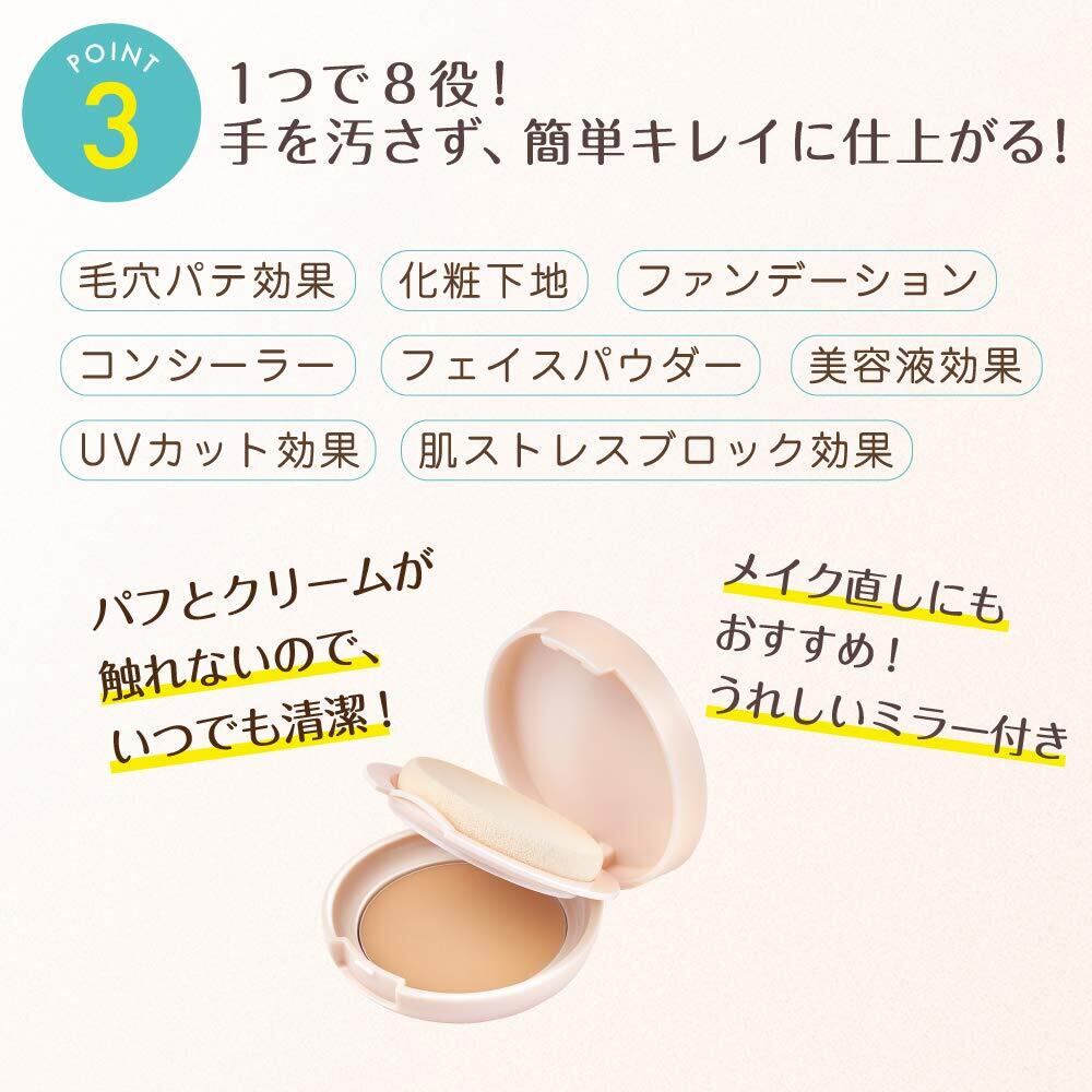 スキンケアでお肌をととのえた後、パフに適量をとり、お肌にすべらせるようになじませてください。特に毛穴が気になる部分には、ポンポンとやさしくなじませてください。○パフはいつも清潔にお使いください。