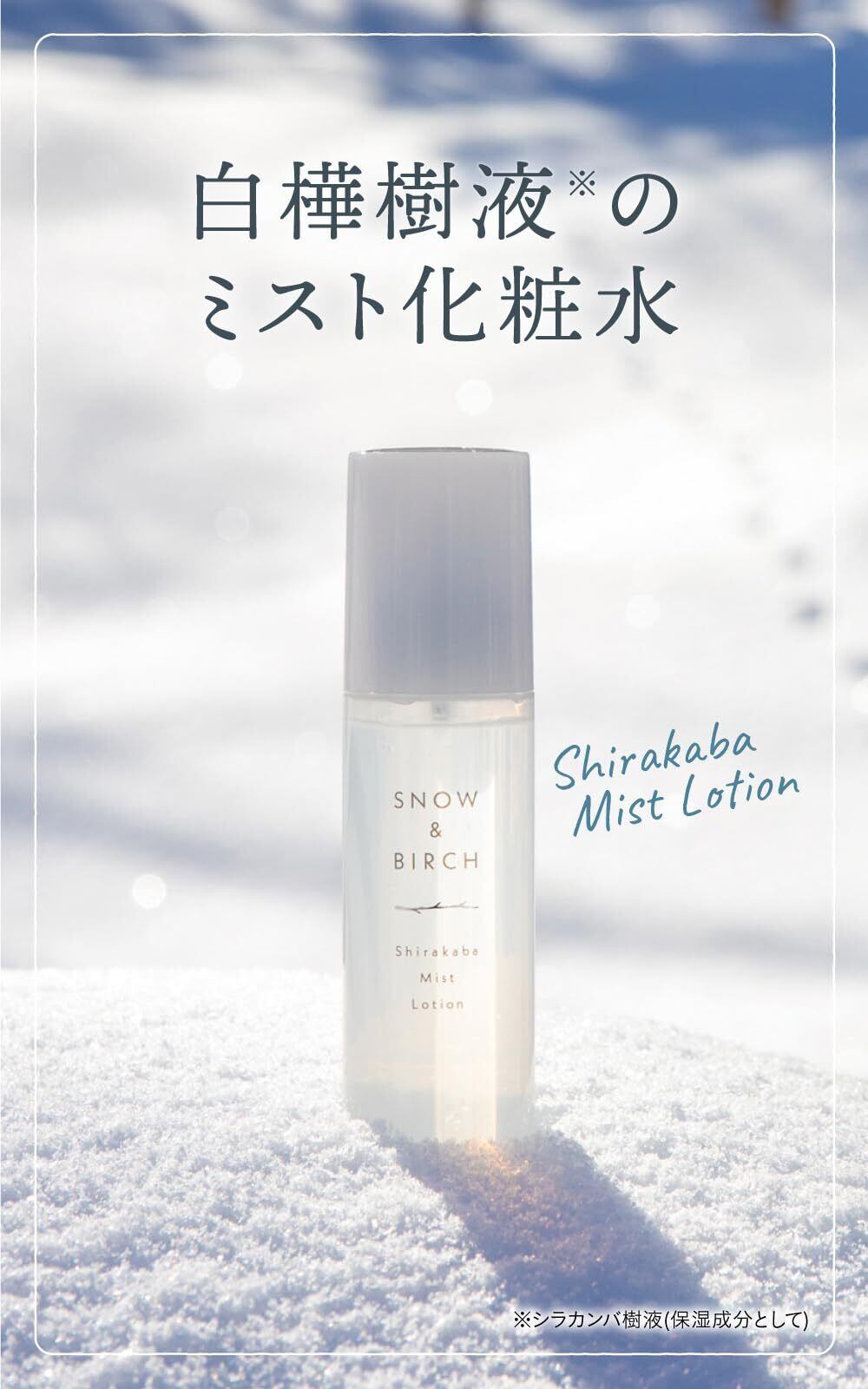 【早春2週間しか採取できない白樺樹液のミストでうるおい肌へ】白樺樹液にヒアルロン酸やコラーゲンを配合した、高保水ミストローション。すっとなじんで、うるおいベールが肌をやさしく包み込み、ホコリや強風などの刺激が肌につきにくくなります。リフレッシュできる、ハマナスローズの香り。