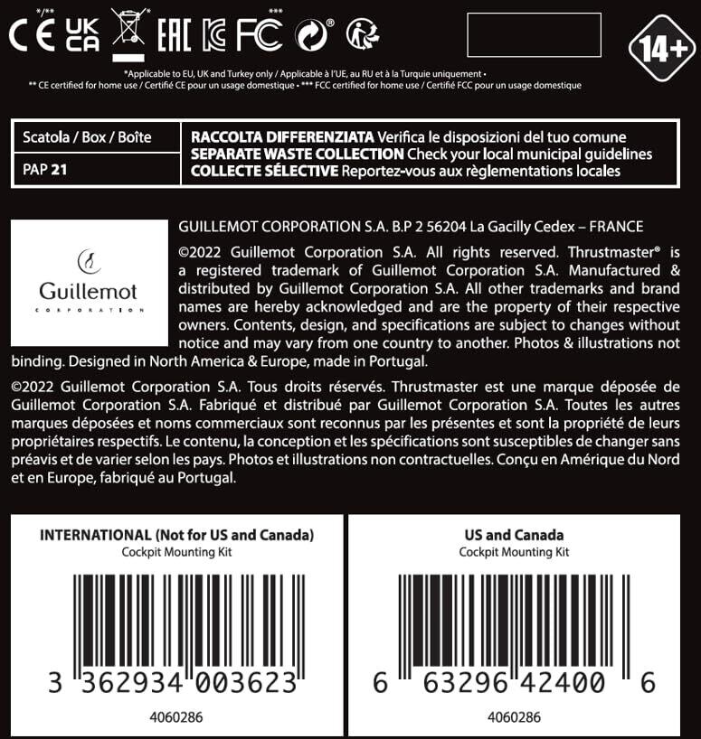 T3PA または T3PA-PRO ペダルセット用に構成されたコックピットに、Thrustmaster T-LCM Pedals ペダルセットを簡単に取り付けることができます (コックピットとペダルセットは別売)。