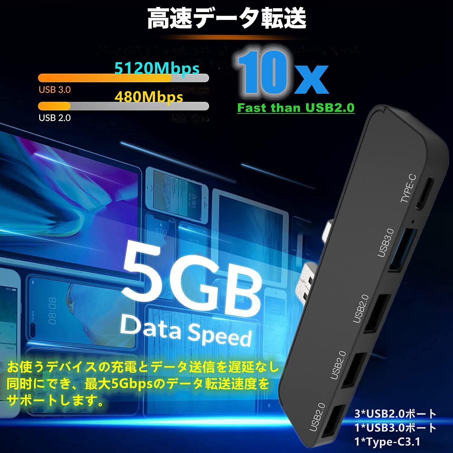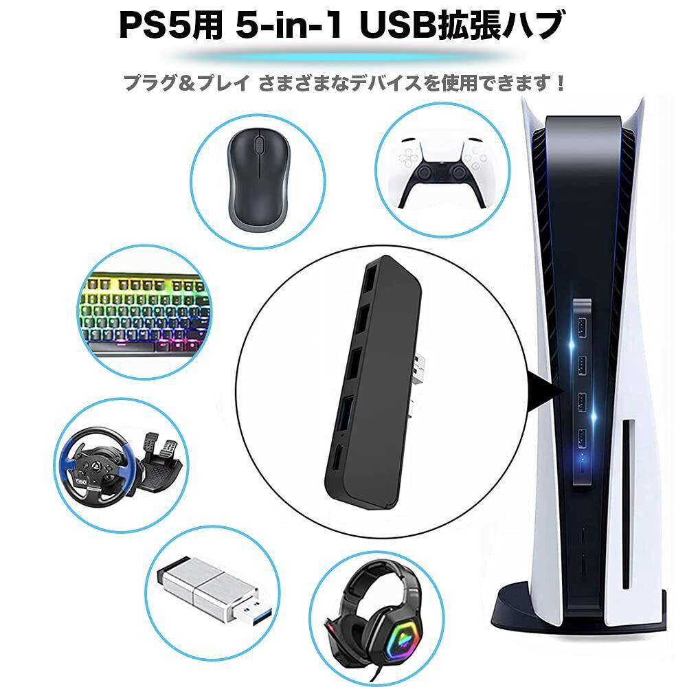 PS5用 USBハブ PS5用 5ポート USB拡張ハブ [改良モデル] PS5ハブ 外付け 本体一体型 Type-C 3.1 USB 3.0 コンパクト For PS5用