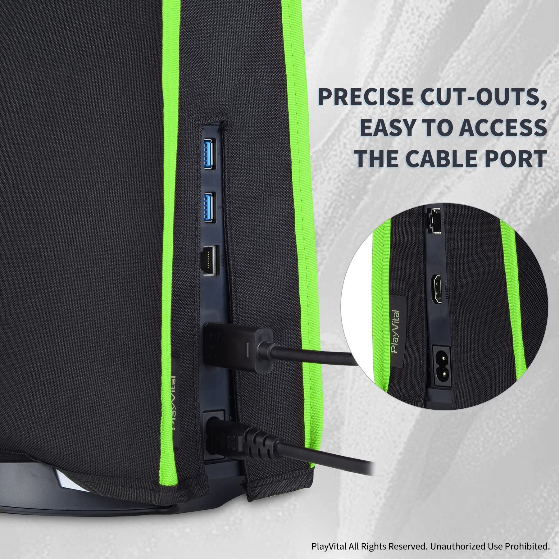 PlayVital ps5に適用防塵カバー、柔らかくてきれいなダストカバーはプレーステーション5本体に適用可能、ps5対応用ダストカバー、ps5対応用収納カバー【ブラック&ネオングリーントリム】