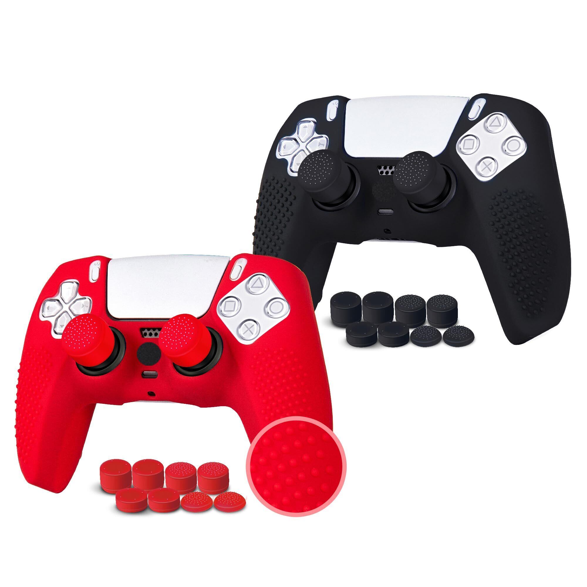 JYXETOV PS5 コントローラー カバー 1個/2個(28オプション)、無料の8ボタンキャップ、シリコーン保護、オリジナルの充電器で充電できます、滑り止めデザイン、両面印刷パターンに適しています