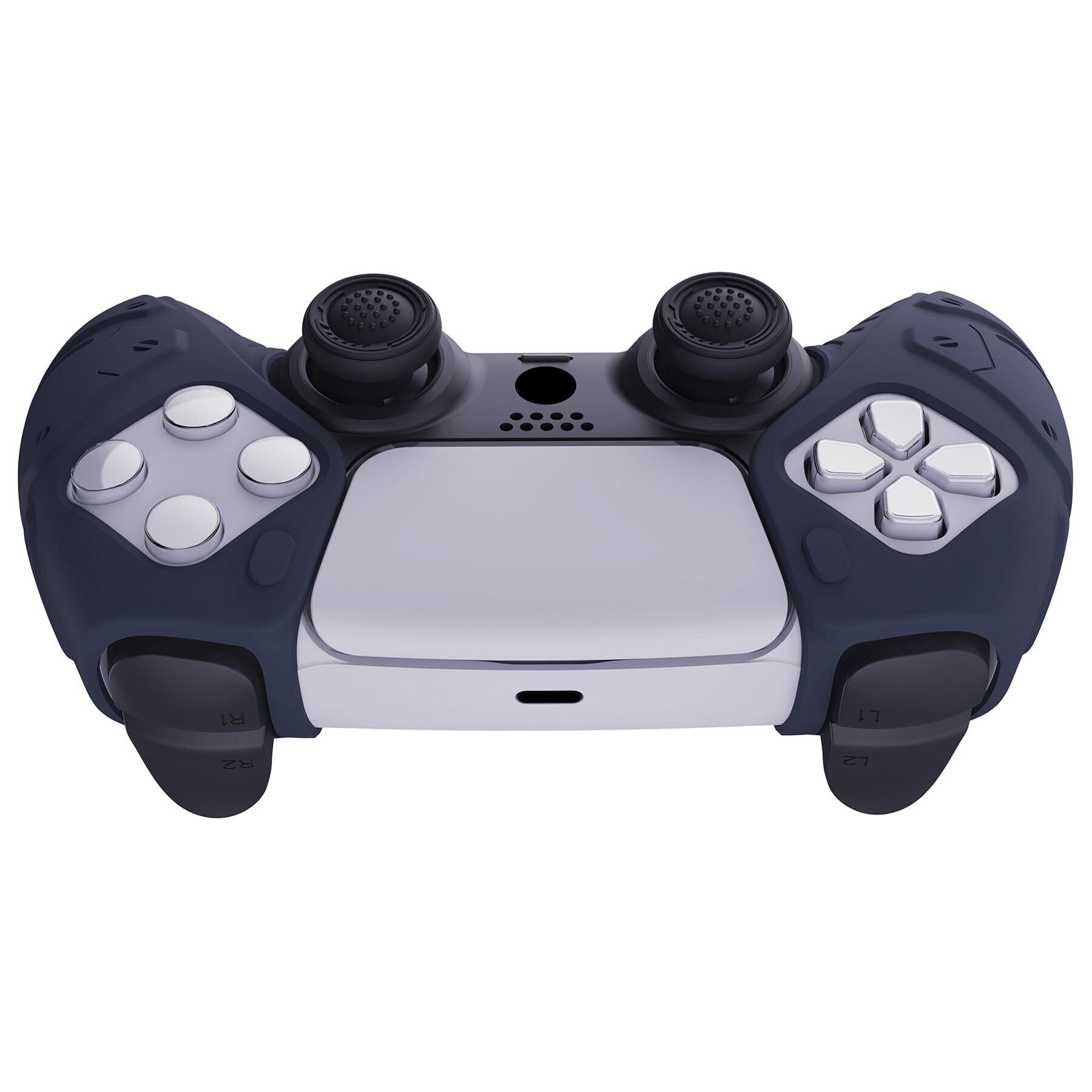 PlayVital PS5コントローラーに対応するカバー、人間工学に基づいたソフトコントローラーシリコングリップ部分だけに対応するケース、PS5コントローラーに対応する親指スティックキャップ付き、充電スタンドには使用できる【メカエディション-ミッドナイトブルー】