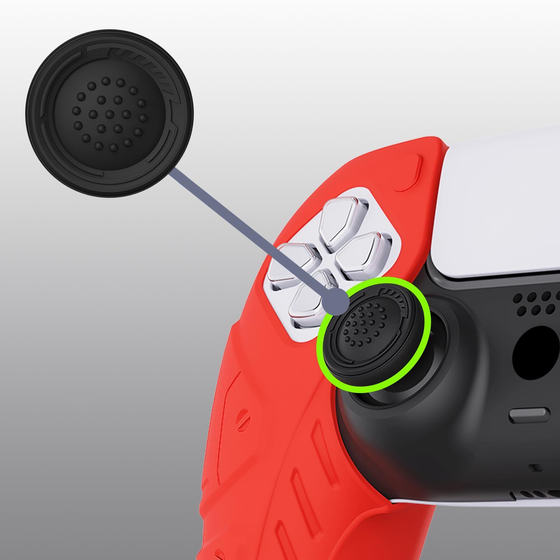 PlayVital ps5コントローラーに対応するカバー、人間工学に基づいたソフトコントローラーシリコングリップ部分だけに対応するケース、ps5コントローラーに対応する親指スティックキャップ付き、充電スタンドには使用できる【メカエディション-パッションレッド】