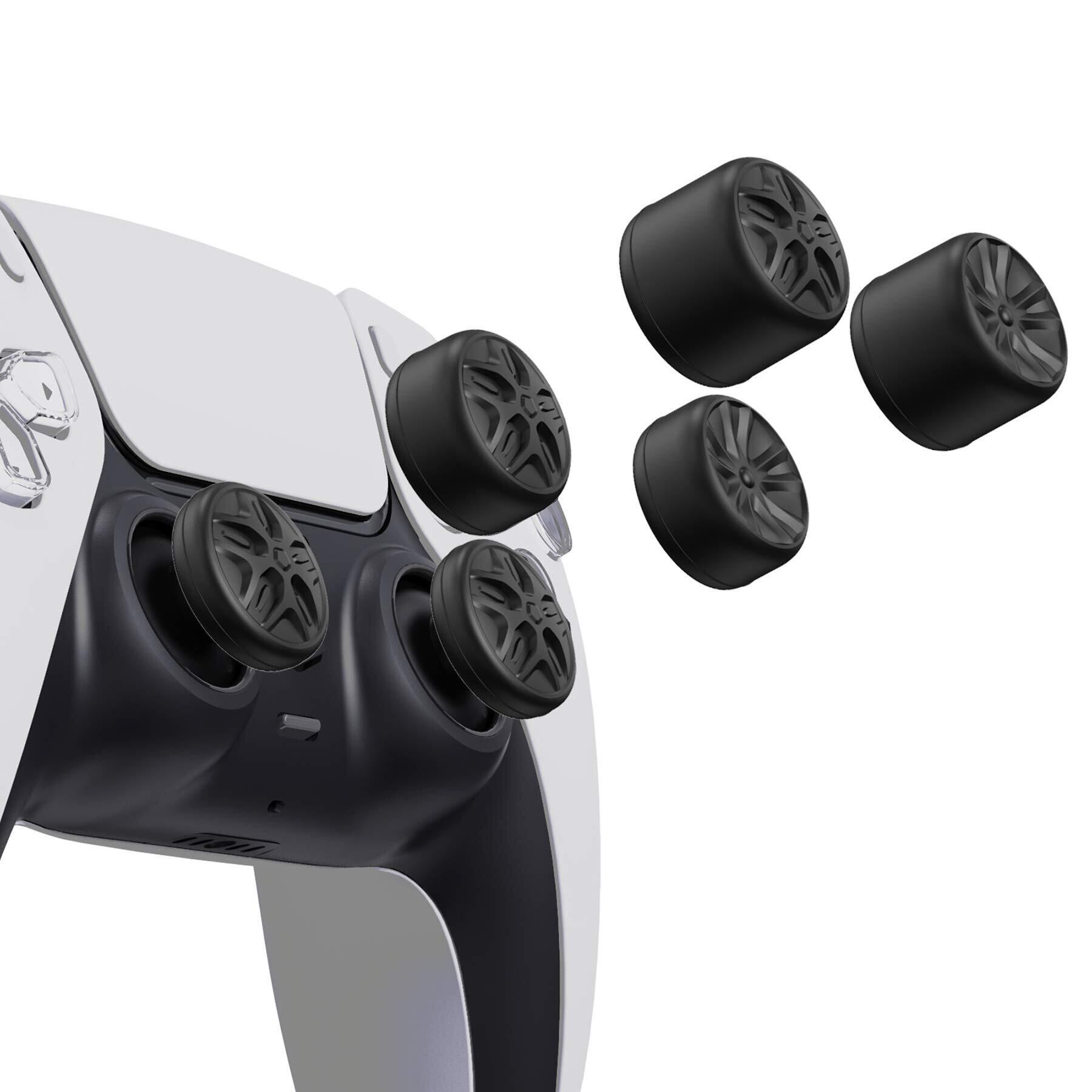 PlayVital PS5コントローラーに対応、PS4コントローラーに対応、XboxSeries X/Sコントローラーに対応、Xbox Oneコントローラーに対応、Xbox One X/Sコントローラーに対応やSwitch Proコントローラーに対応できる親指スティックキャップ - 3つの高さの凸面と凹面付き-五芒星と回転ホイールデザイン-ブラック