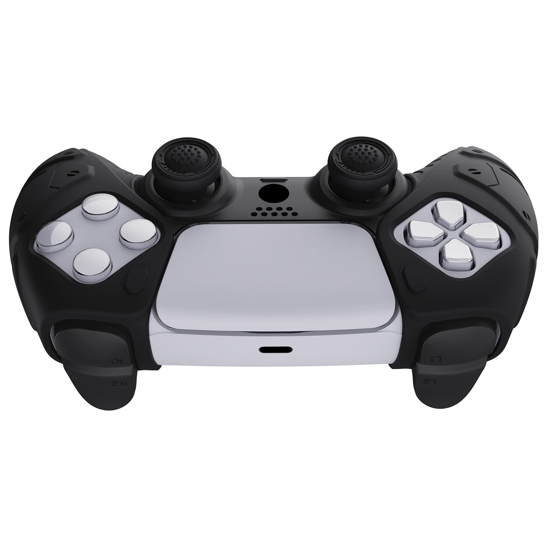 PlayVital ps5コントローラーに対応するカバー、人間工学に基づいたソフトコントローラーシリコングリップ部分だけに対応するケース、ps5コントローラーに対応する親指スティックキャップ付き、充電スタンドには使用できる【メカエディション-ブラック】