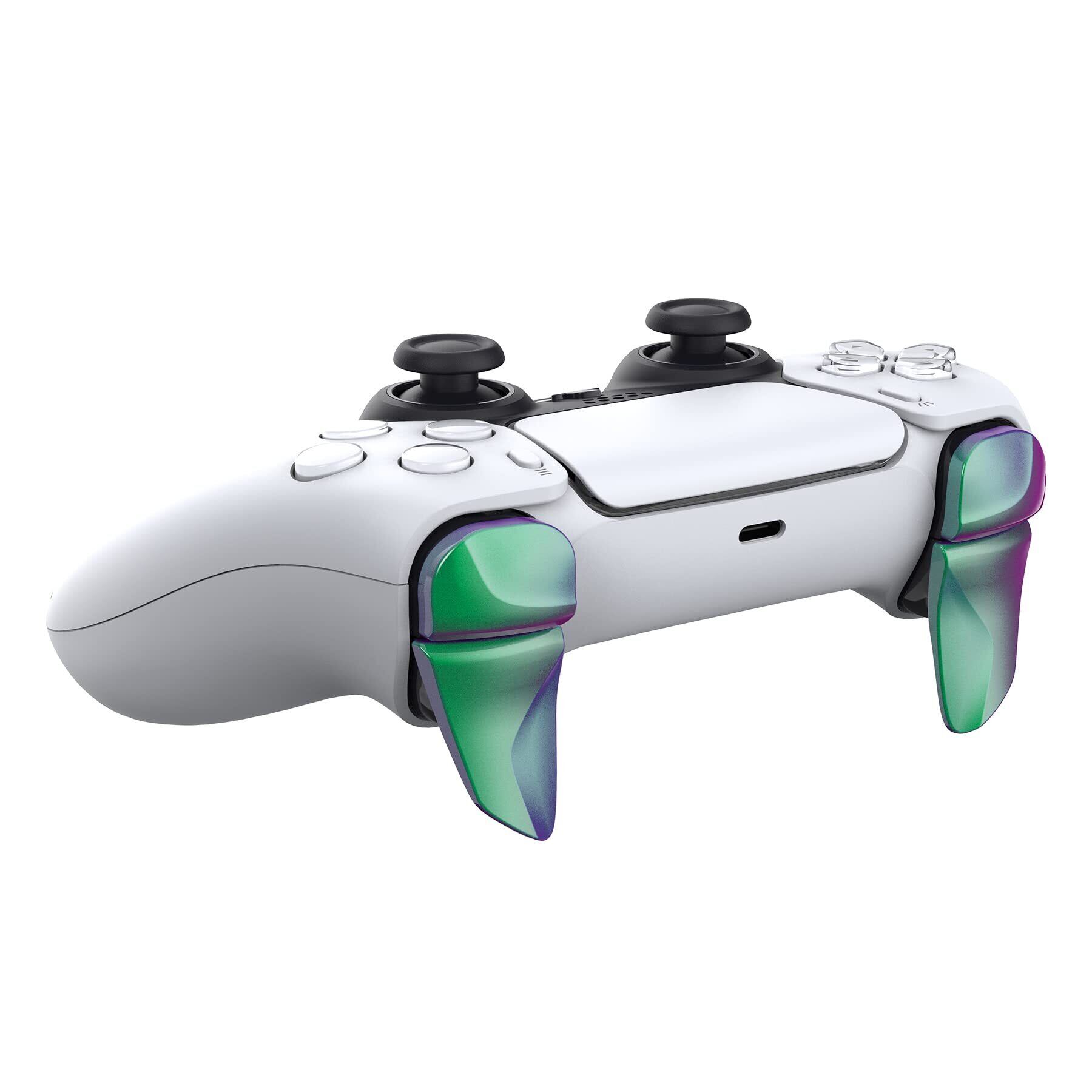 PlayVital ps5コントローラーに対応用2ペアショルダーボタンエクステンショントリガー、ps5 edge対応用ゲーム改善アジャスター、ps portal対応用バンパートリガーエクステンダー【グリーンパープルカメレオングロッシー】