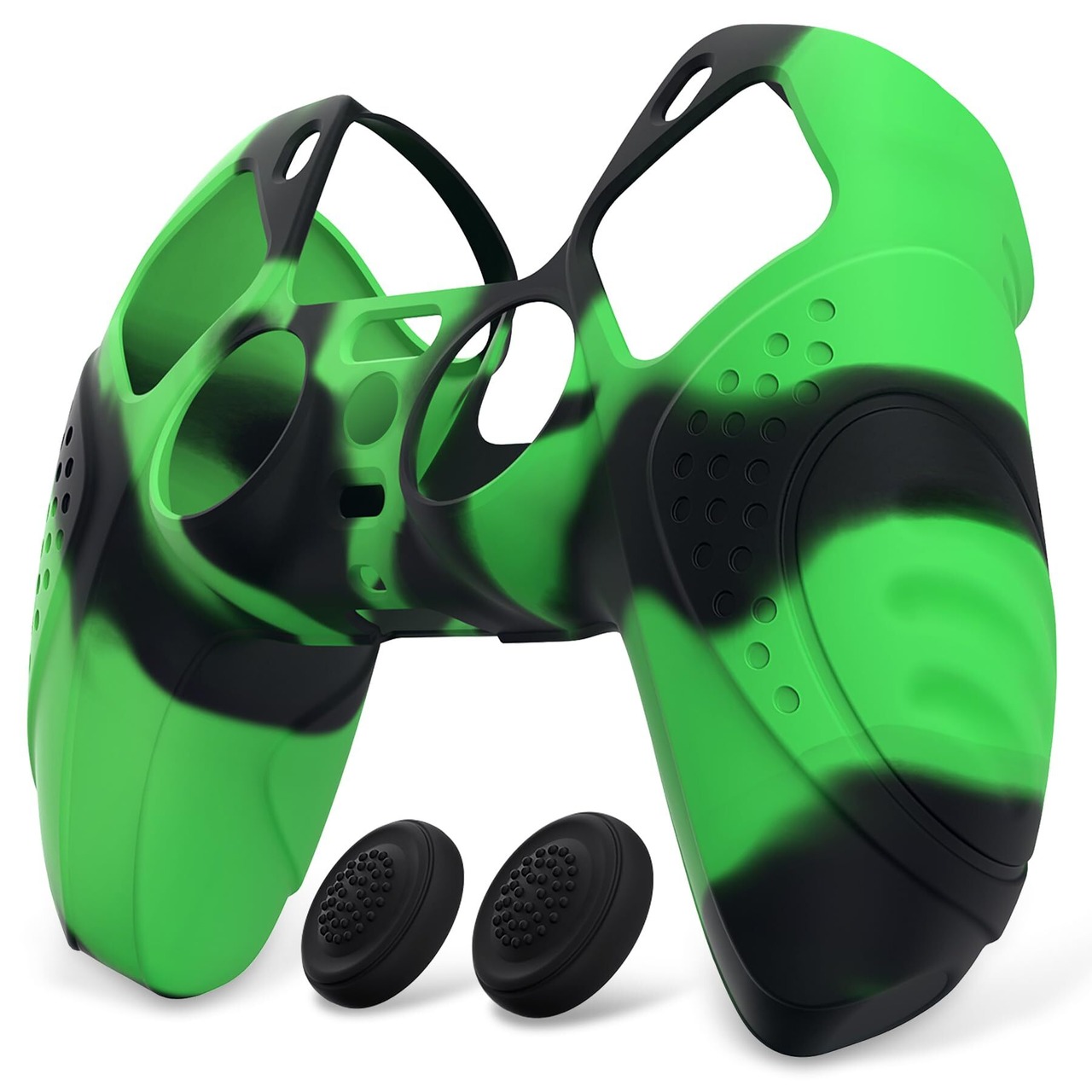 eXtremeRate PlayVital ps5対応用保護カバー、ps5コントローラーに適用するカバー、スティックキャップ付き【グリーン&ブラック】