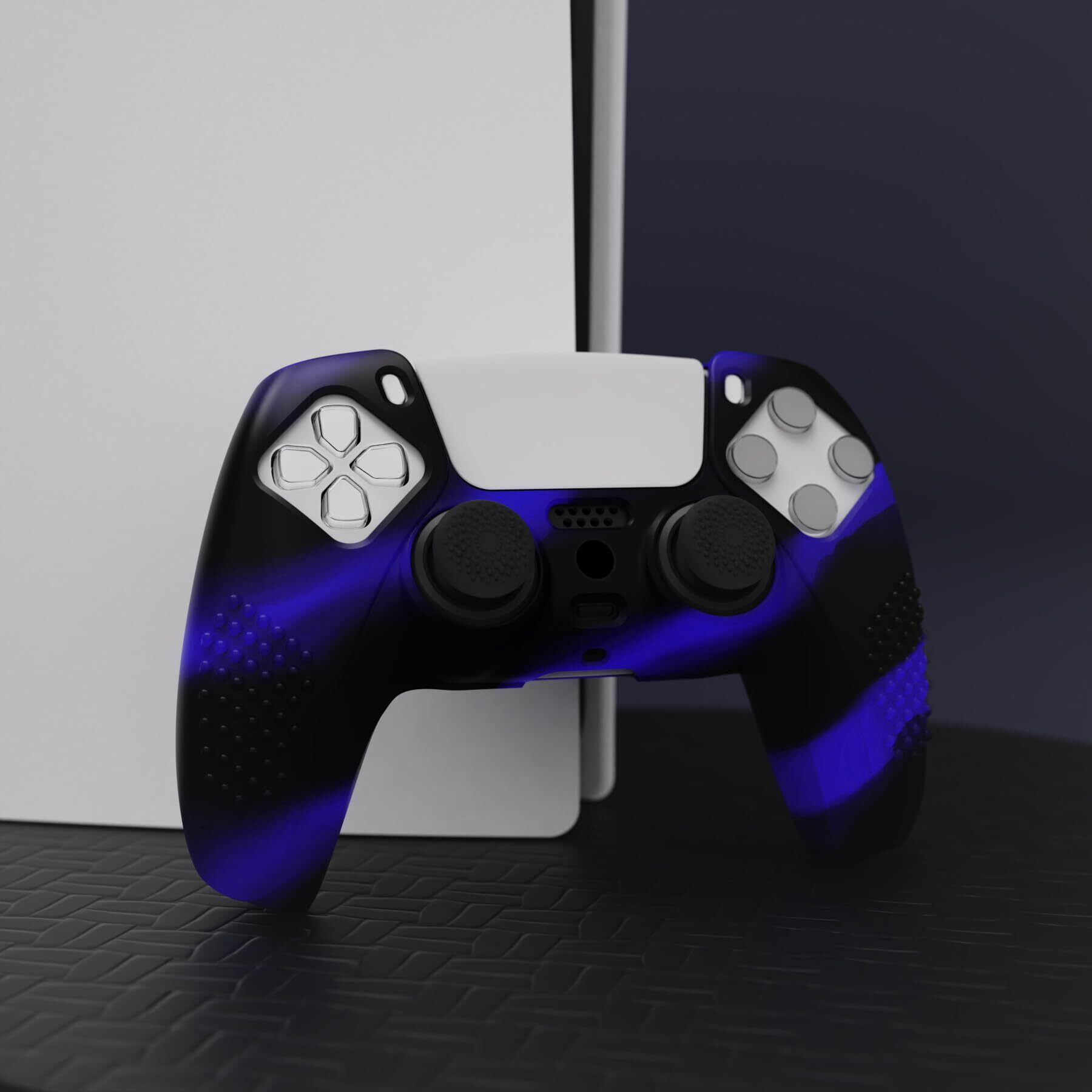 eXtremeRate PlayVital 3Dスタッズエディション ps5コントローラーに対応用保護カバー、滑り止めシリコンスキンケースカバー、ps5コントローラー対応用人間工学に基づいたソフトラバー、保護ケース親指スティックキャップ付き【ブルー&ブラック】