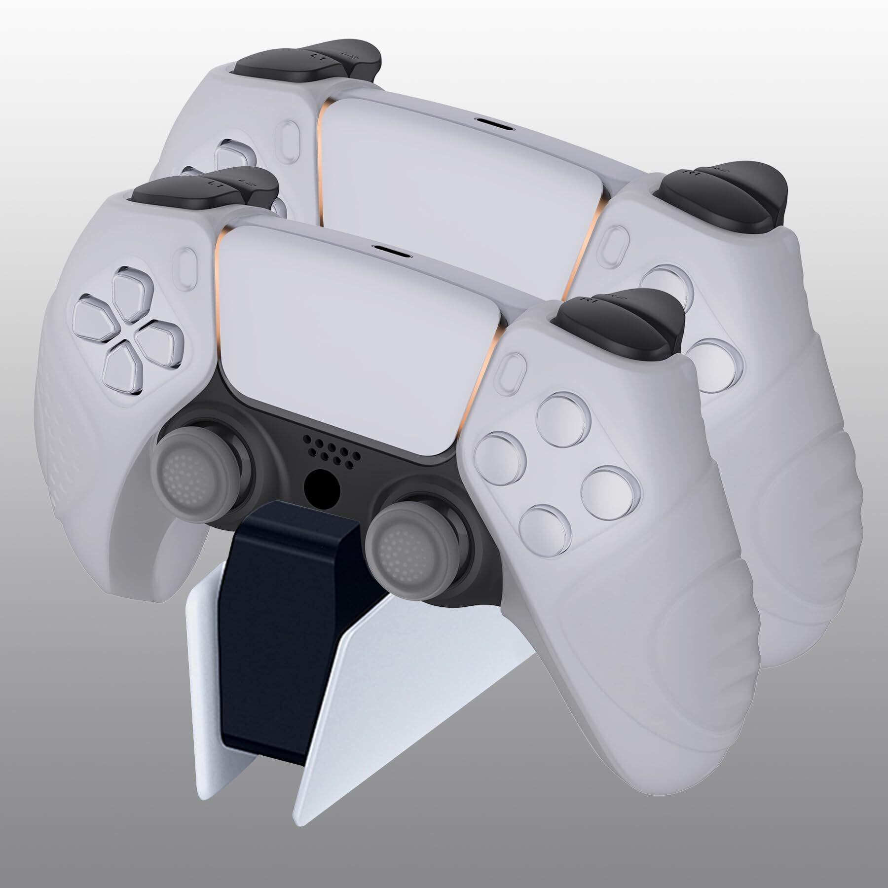 PlayVital ps5コントローラーに対応用シリコンカバー、グリップ部分だけに適用するケースカバー【ガーディアンエディション】クリアホワイト