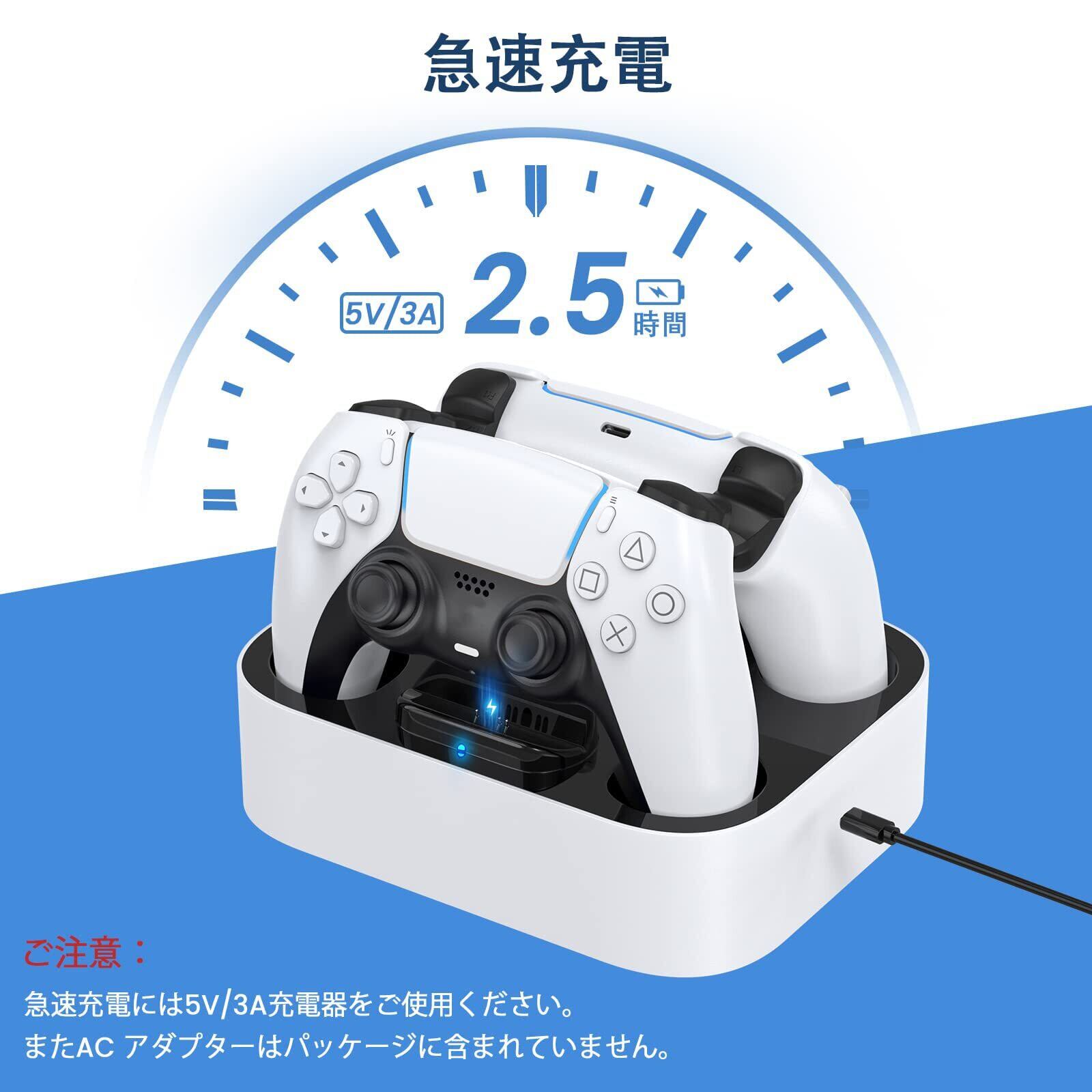 【急速充電】このps5 コントローラー 充電スタンドは、2台のPS5コントローラーを同時に充電できます。 5V / 3A電源を使用して、2台を3時間以内に、1台を約1.5時間フル充電できます。充電時間を節約して、ゲームタイムをもっと楽しめます。 (ご注意:急速充電には5V / 3A電源を使用してください。アダプターはパッケージに含まれていません)
