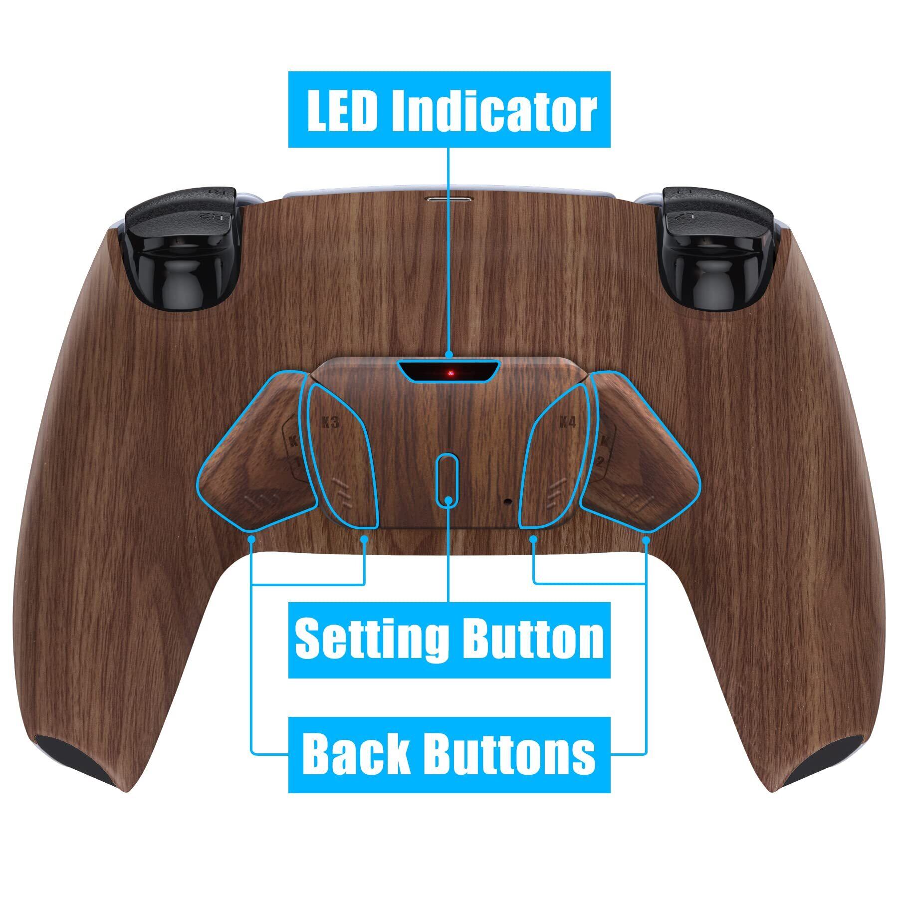 eXtremeRate ps5コントローラーBDM-010&BDM-020に対応用プログラムできる背面パドルパターン柄プラスティック製RISE4リマップキット、ps5コントローラーに対応用アップグレードボードと再設計されたバックケース&背面ボタン4つ‐ps5本体ではない【木目調】