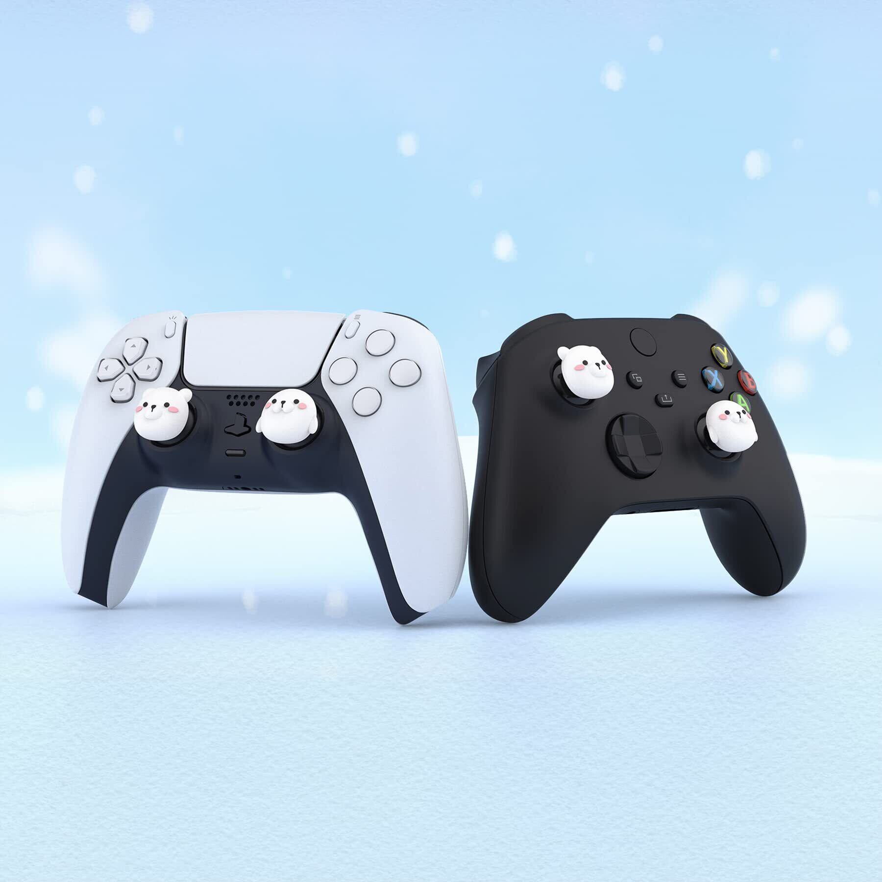 PlayVital ps5とps4コントローラーに対応用可愛いサムグリップキャップ、Xbox seriesX/Sコントローラーに対応用シリコンアナログスティックキャップカバー、Switch Proコントローラーに対応用サムスティックキャップ【ホッキョクグマ&ベイビーアザラシ】