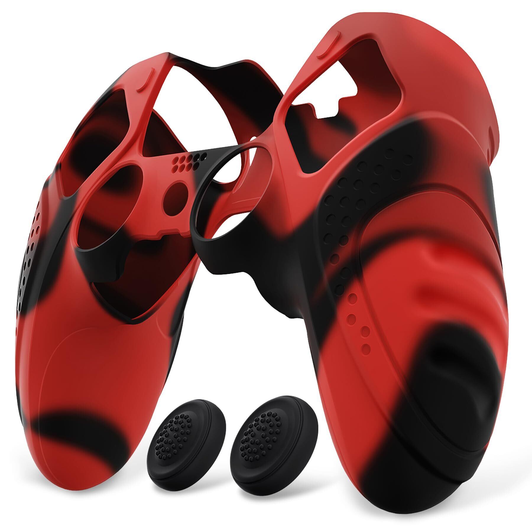 PlayVital ps5 Edgeワイヤレスコントローラー用ソフトラバープロテクタースキン、ps5 edgeコントローラーに対応用人間工学に基づいた滑り止めシリコンカバーケース、サムグリップキャップ付き【ガーディアンエディション-レッド&ブラック】