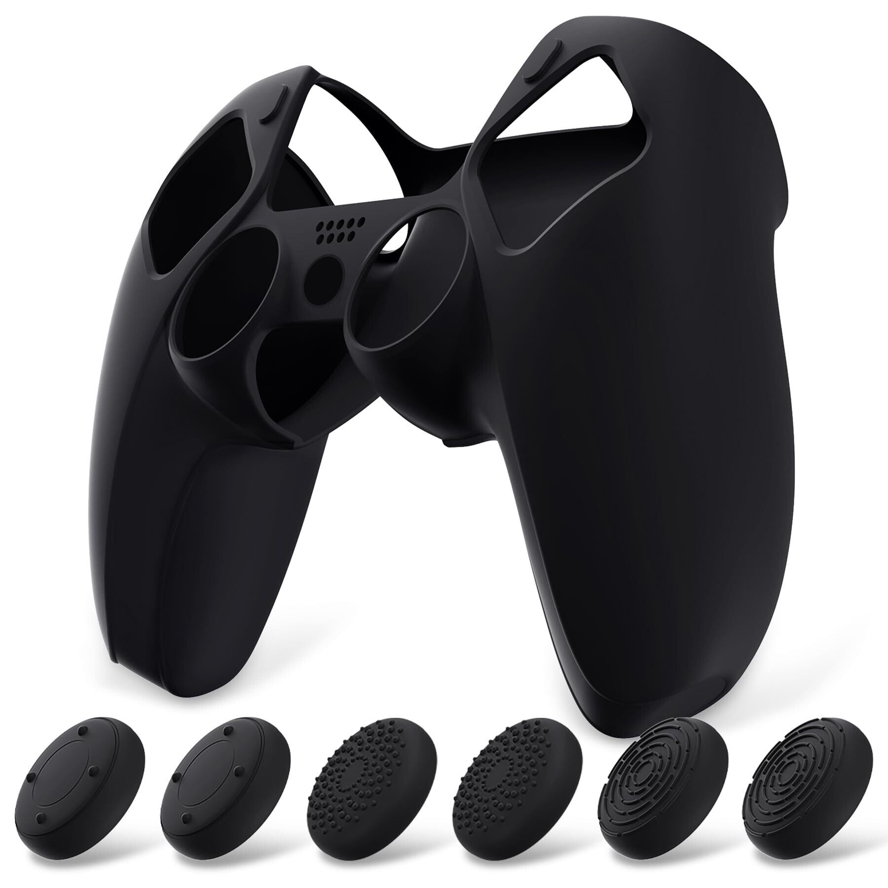PlayVital ピュアシリーズps5コントローラーに対応用保護シリコンカバー、ps5コントローラーに対応用ソフトラバーグリップケースサムスティックキャップ六つ付き、充電スタンドに使用可能【ブラック】