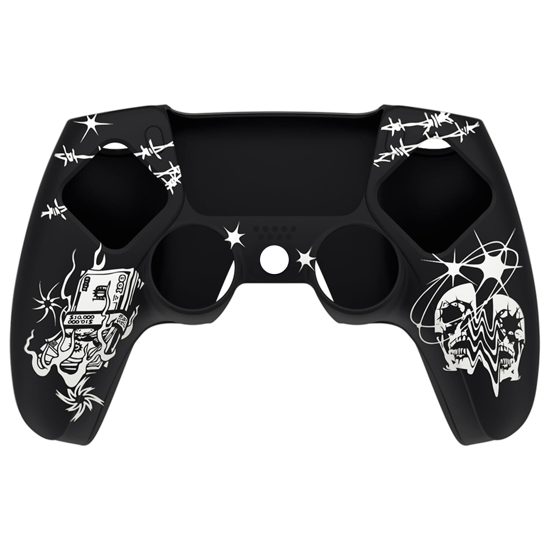 PlayVital ピュアシリーズパタンデザインps5コントローラーに対応用保護シリコンカバー、ps5コントローラーに対応用ソフトラバーグリップケースサムスティックキャップ六つ付き、充電スタンドに使用可能-【罪の源】