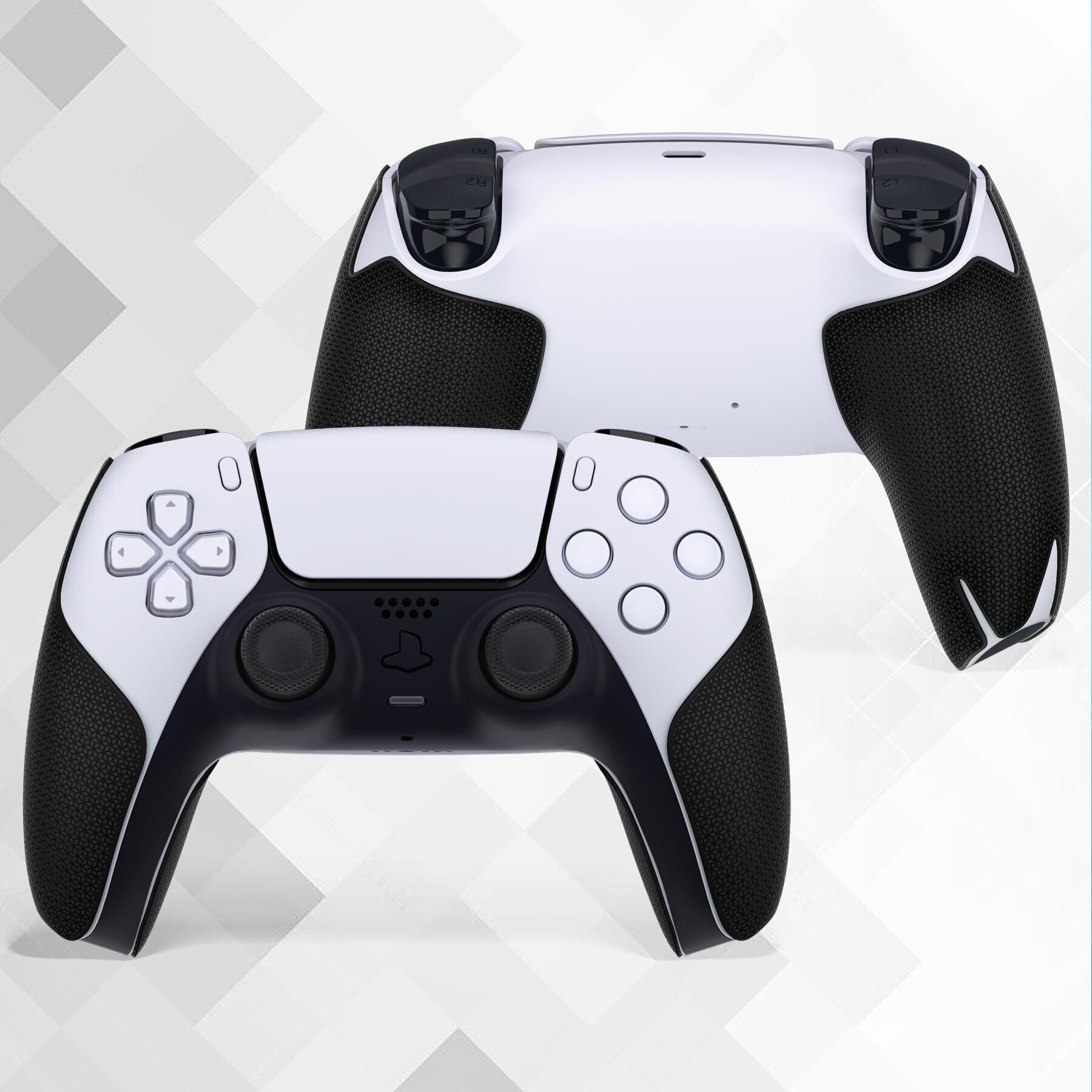 PlayVital ps5コントローラーに対応用グリップシール、ps5コントローラー対応用分割デザイン滑り止めソフト六角形ダイヤモンドテクスチャ吸汗性ハンドルグリッププロテクター【ブラック】