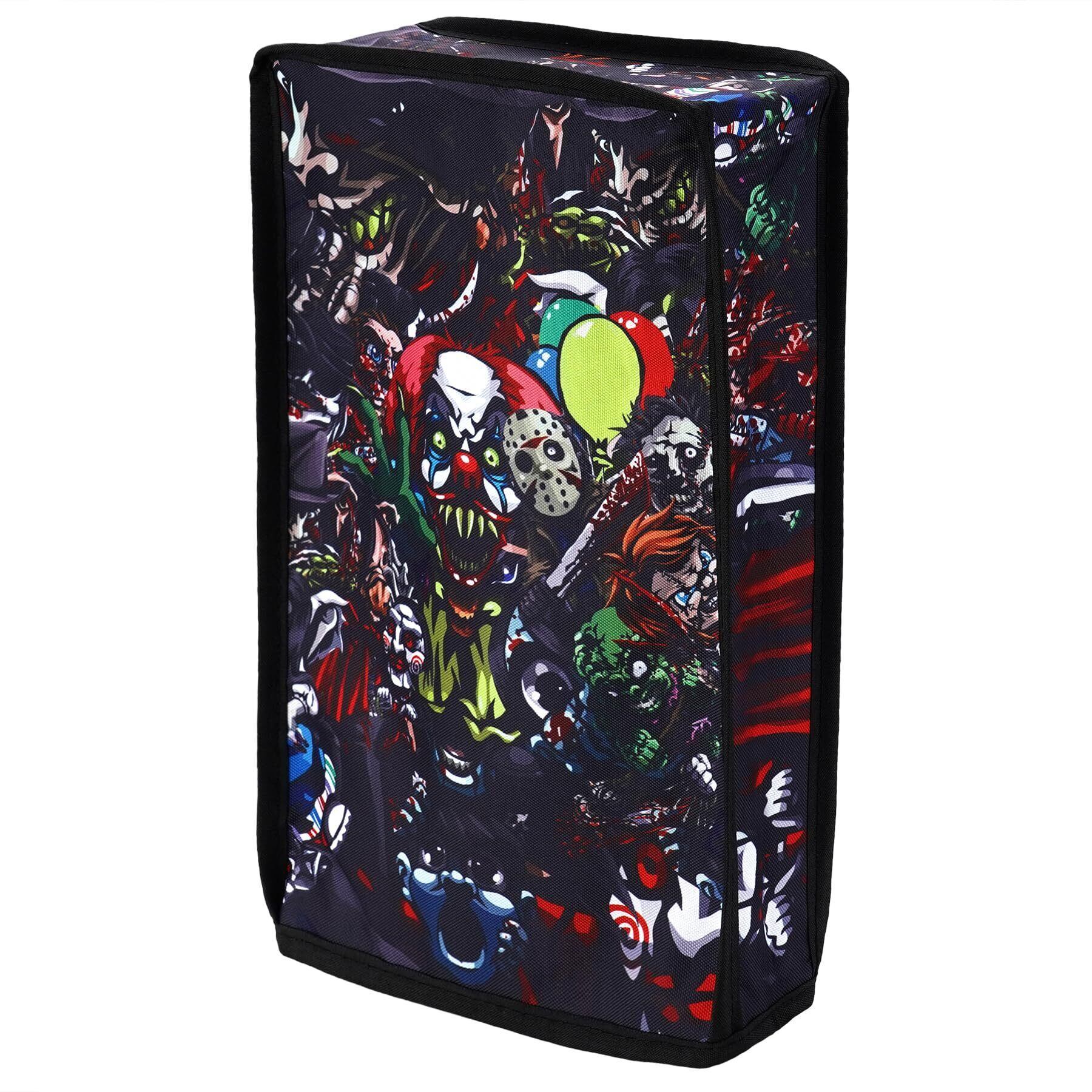 PlayVital ps5 Slimデジタルバージョンに対応用ダストカバー(縦式)パタンデザイン、新型バージョンps5 Slimデジタルバージョンコンソールに対応用ナイロン製ダストカバー(縦式)【怖いパーティー】