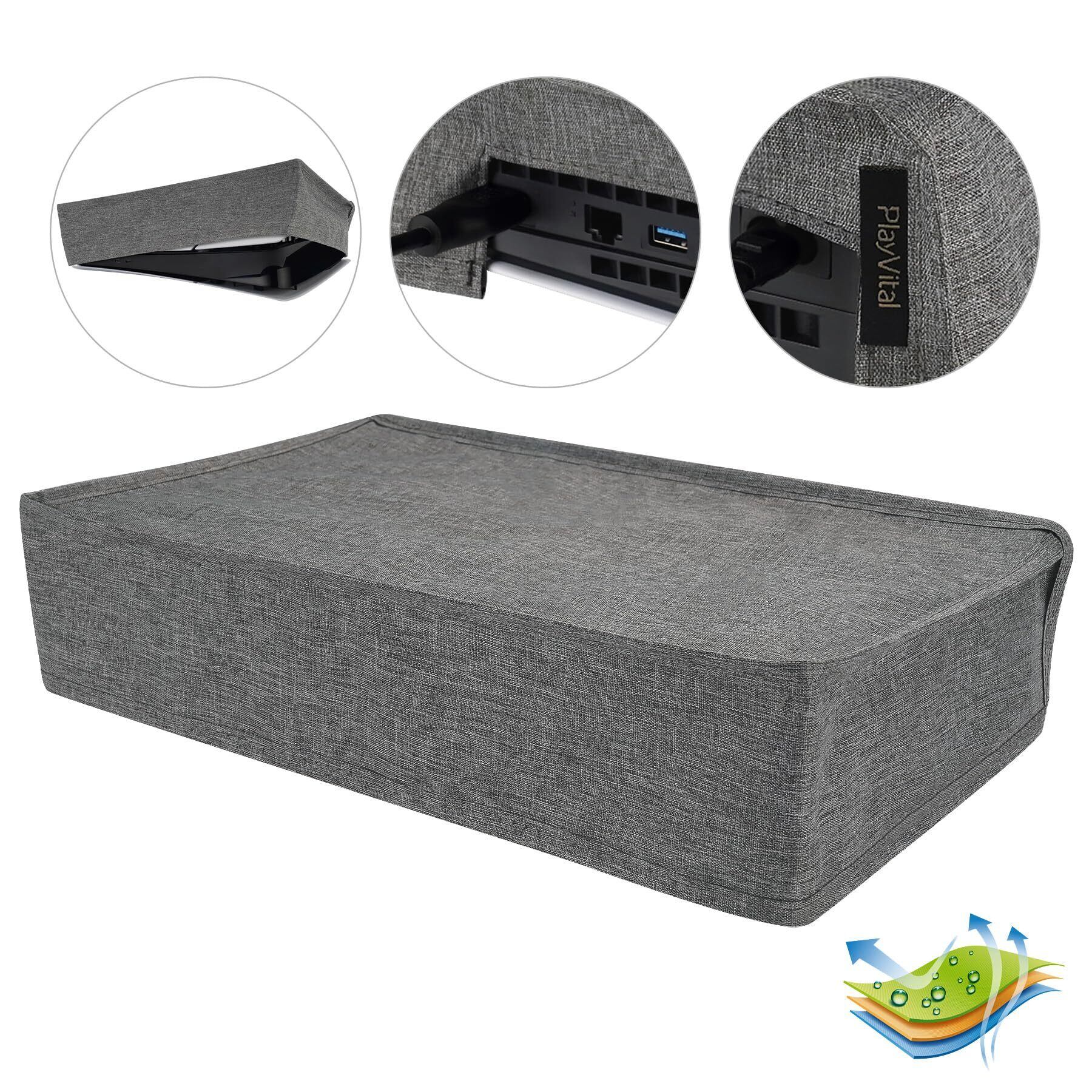 PlayVital 新型バージョンのps5 Slimデジタルバージョンに対応用ダストカバー(横式)、ps5 Slimデジタルバージョンコンソールに対応用ナイロン製ダストカバー(横式)【グレー】
