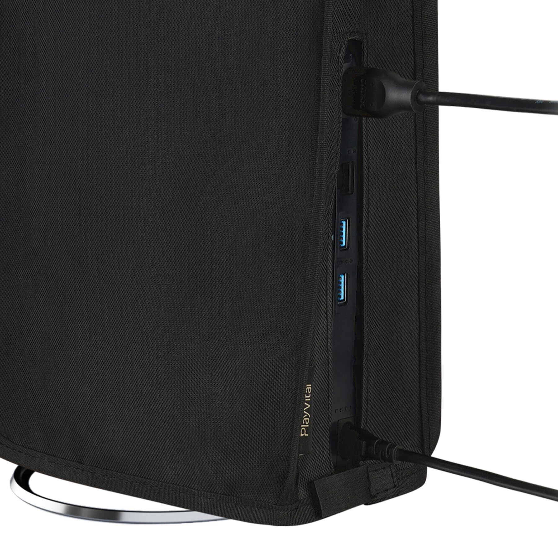 PlayVital ps5 Slimディスクバージョンに対応用ダストカバー(縦式)、ps5 Slimディスクバージョンコンソールに対応用ナイロン製ダストカバー(縦式)【ブラック】