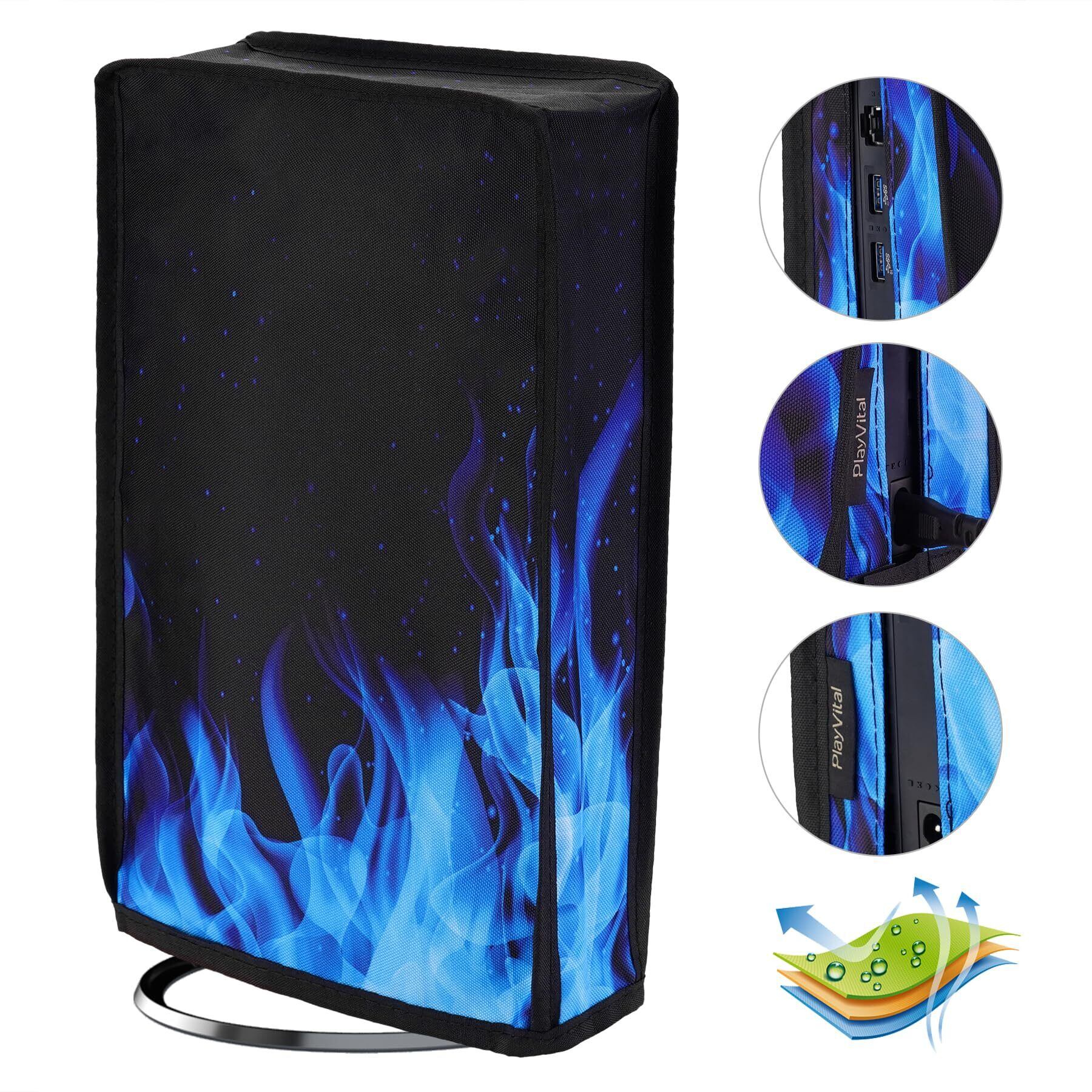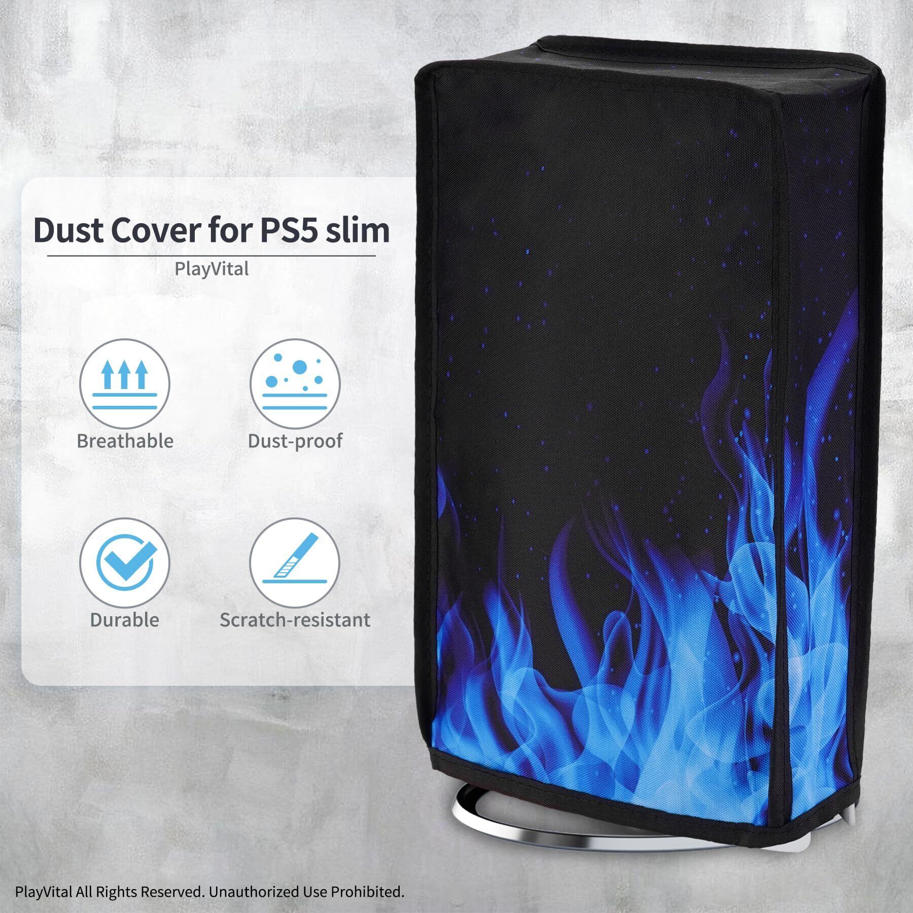 PlayVital ps5 Slimデジタルバージョンに対応用ダストカバー(縦式)パタンデザイン、新型バージョンps5 Slimデジタルバージョンコンソールに対応用ナイロン製ダストカバー(縦式)【ブルーフレーム】