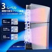 【3段階風速調節】3段階風速調整可能な多機能冷却ファンは、おニーズにより、風速を「低-中-高-オフ」に自由に調整することだで、新型PS5ホストを長時間冷却し、過熱を防げます。