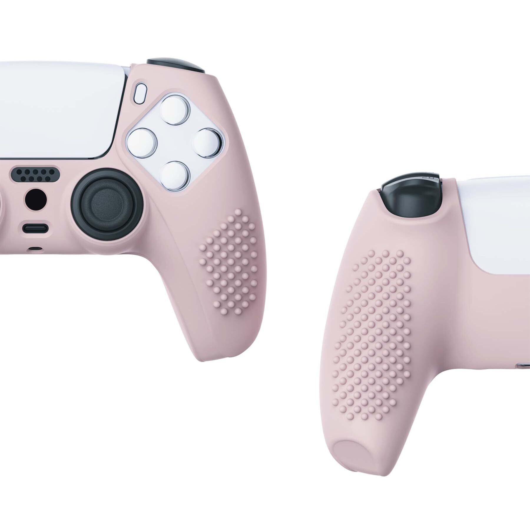 eXtremeRate PlayVital ps5コントローラーに対応用保護カバー、滑り止めシリコンスキンケースカバー、ps5コントローラー対応用人間工学に基づいたソフトラバー、保護ケース親指スティックキャップ付き【3Dスタッズエディション-ピンク色】