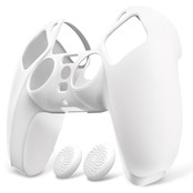PlayVital ps5コントローラーに対応用カバー、滑り止めコントローラーシリコンスキンケース、ps5対応用ソフトラバー保護ケース、親指スティックキャップ付き【ピュアシリーズ-真白】