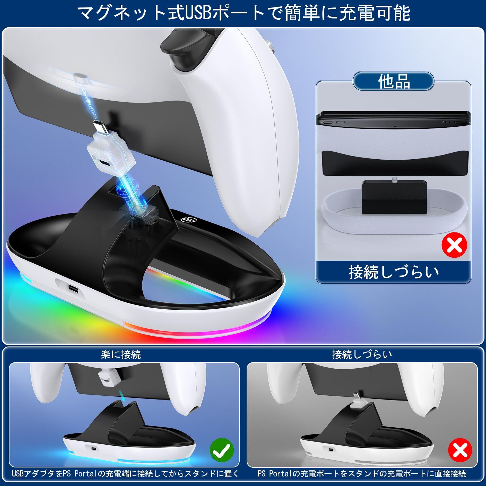 PS Portal 用充電スタンド PS5 Portal リモートプレーヤー 充電ドック 過充電防止 LEDライト付き 取り外し可能なType-Cアダプタ 取付簡単 省スペース PSポータル 周辺機器 アクセサリー