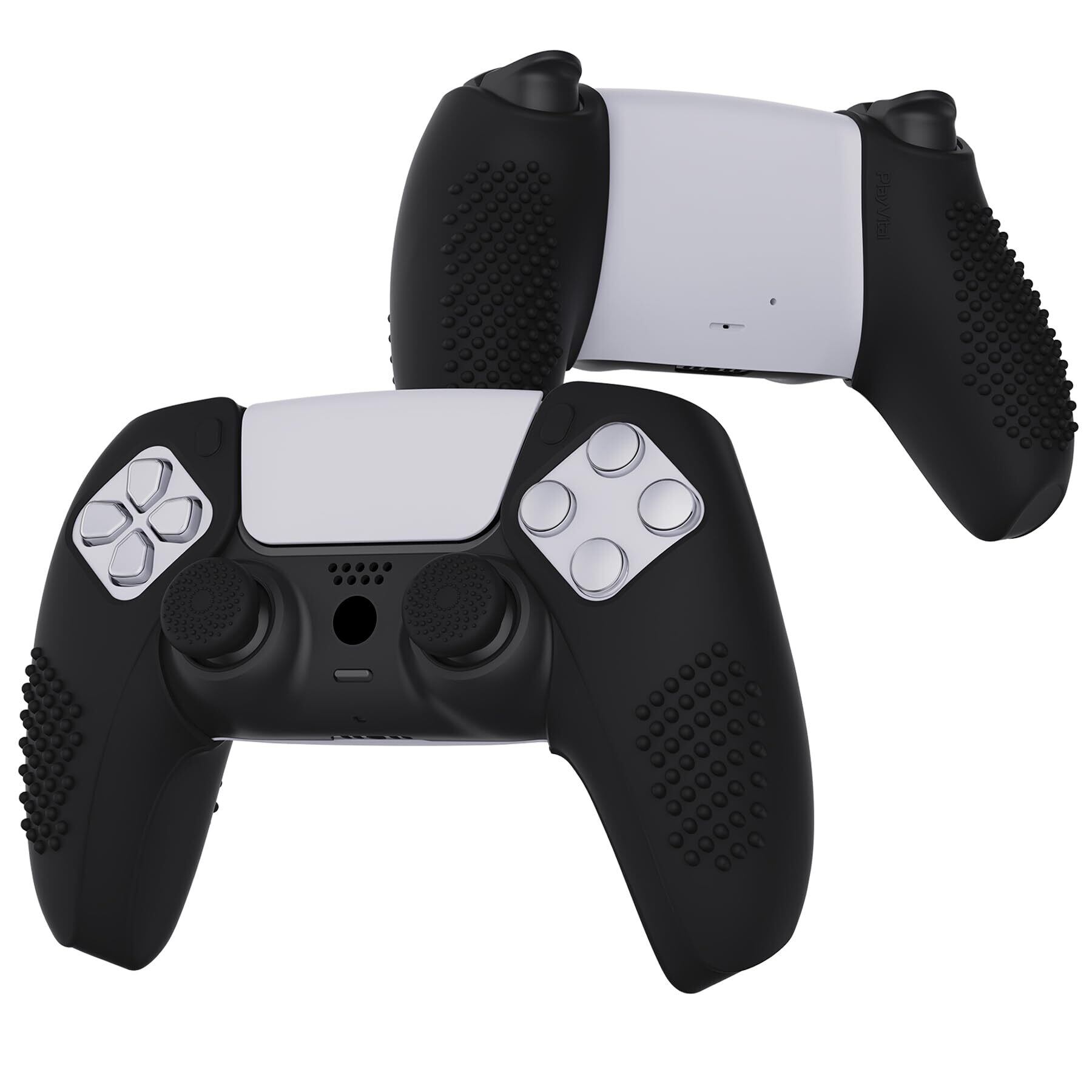 PlayVital ps5コントローラーに対応するカバー、人間工学に基づいたソフトコントローラーシリコンカバー、分割デザインでグリップ部分だけに対応するケース、ps5コントローラーに対応する親指スティックキャップ付き、充電スタンドには使用できる【3Dスタッズエディション-黒】
