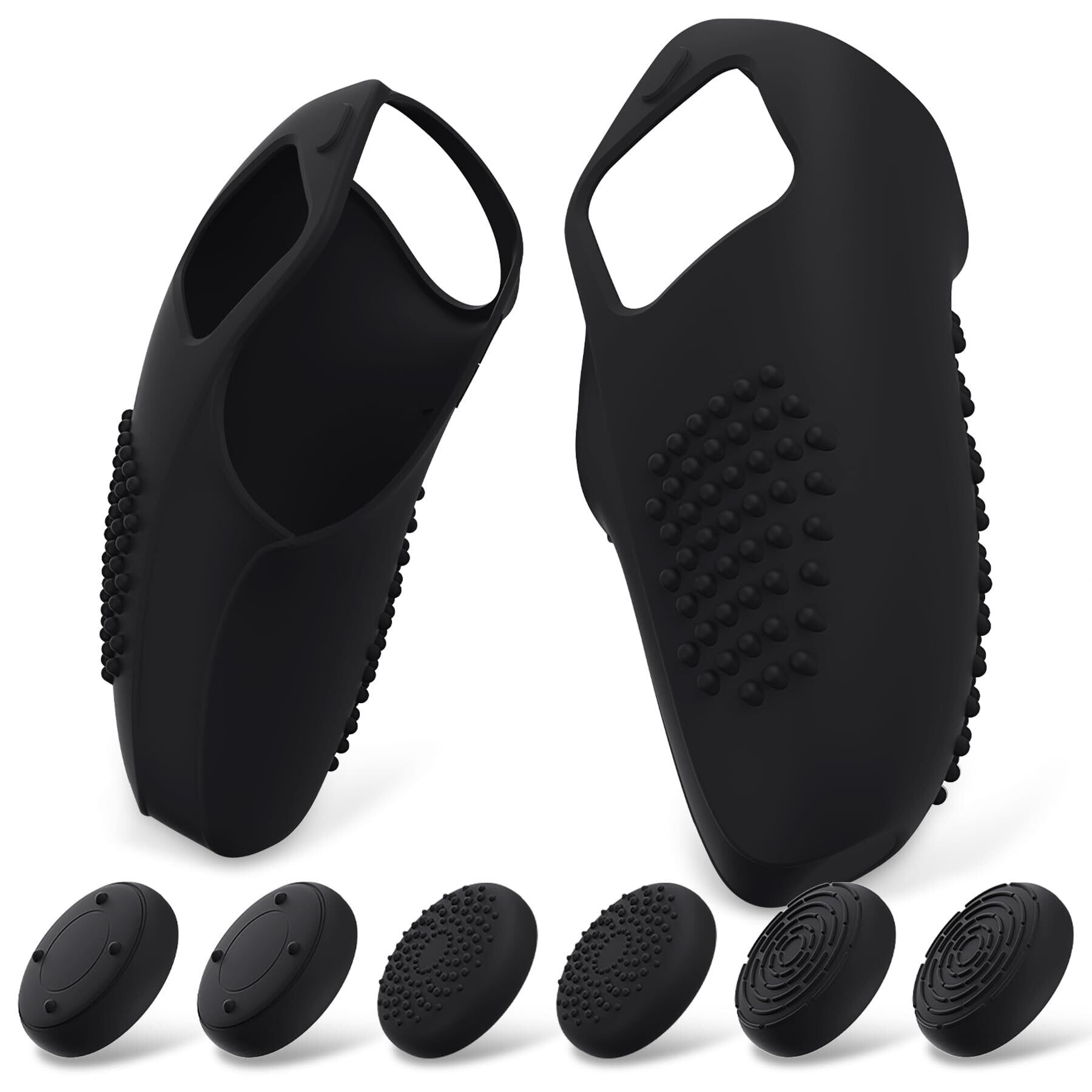 左右のシリコングリップケースが1つずつ、親指グリップキャップ3つのペアが付き、コントローラーおよびその他の部品は含まれていません。