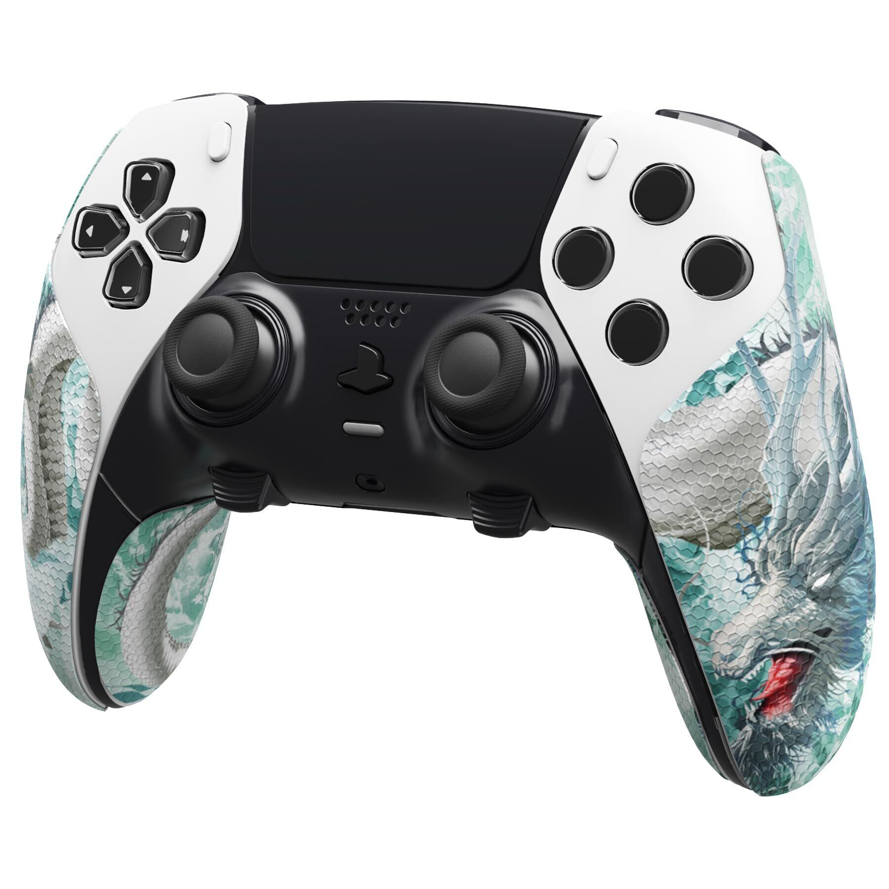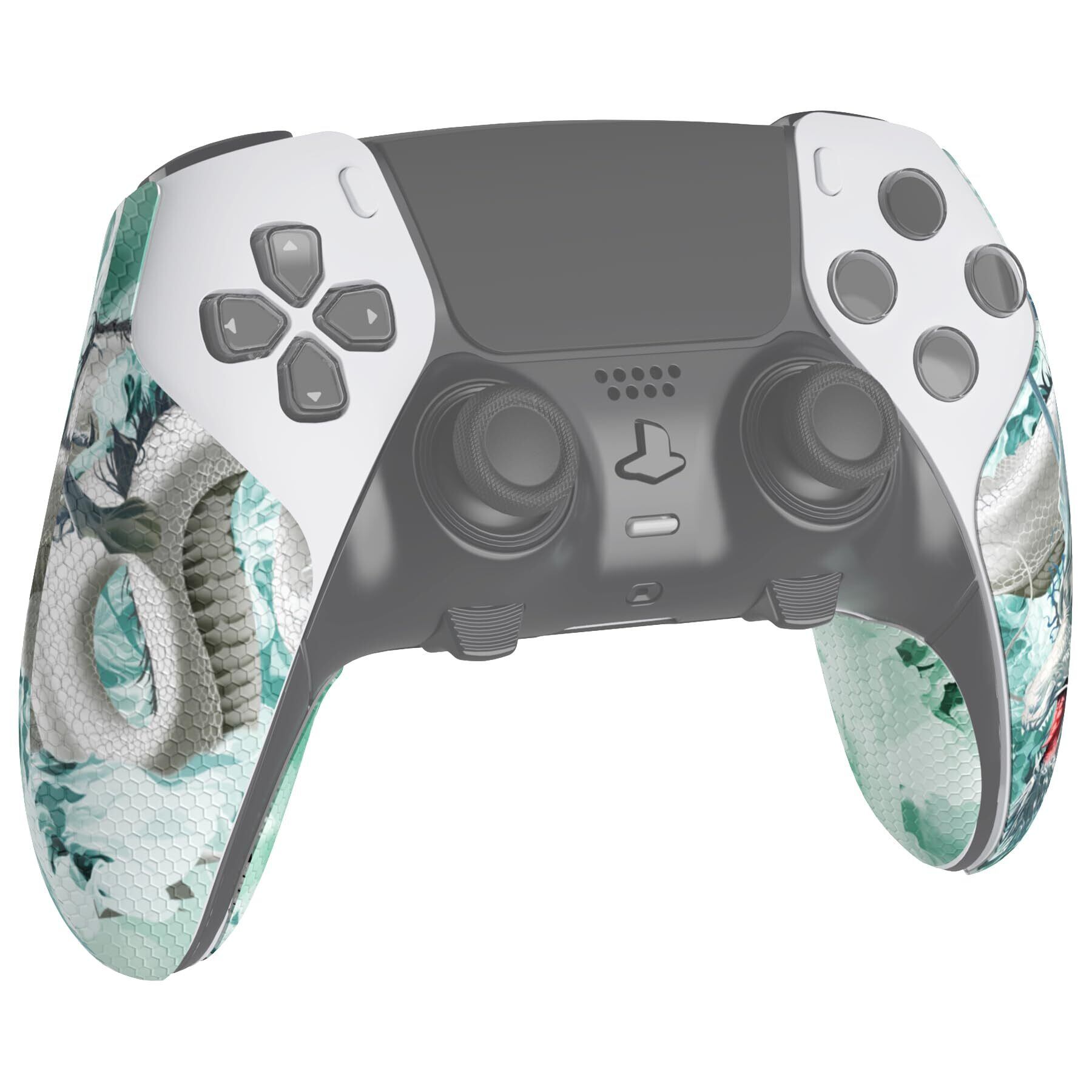 PlayVital ps5 Edgeコントローラーに対応用滑り止め汗吸収グリップステッカー、ps5 edgeコントローラーに対応するプロなテクスチャード加工のソフトPUハンドルグリップステッカー【翡翠のドラゴン】