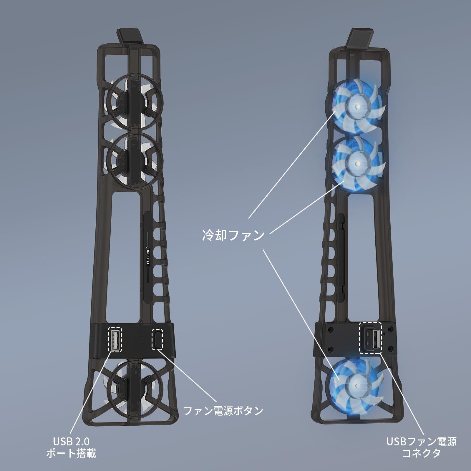 【3段階風速調節可能】 冷却ファン手動モードは本体のUSBポート横の切り替えスイッチで3段階調節可能です。ご注意:ボタンを3秒間押すとファンがOFFになり、もう一度ボタンを3秒間押すとONになります。