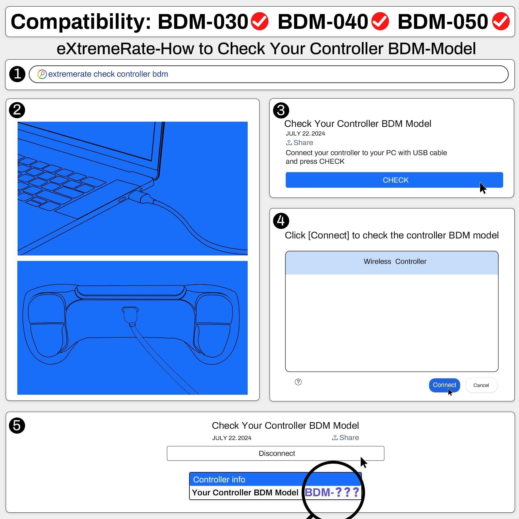 ps5コントローラーをプロなeSportエリートコントローラーに変えましょう。ps5コントローラーのBDM-030&BDM-040&BDM-050モデルにのみ対応しています。お使いのBDMモデルを確認する方法については、YouTubeで「extremerate check bdm for ps5 controller」または「fiE4BWSlBRI」を検索してください。