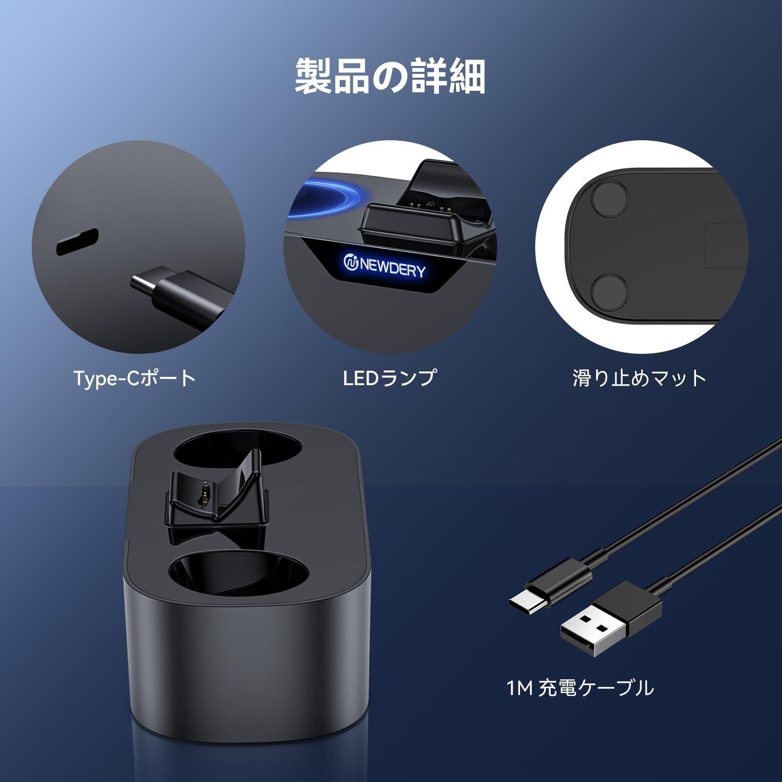 NEWDERY PS5 コントローラー 充電スタンド PS5 コントローラー edge 充電器 収納スタンド 急速充電 周辺機器 アクセサリ USB-Cケーブル付属 LED指示ランプ付き 過充電防止 コンパクト 軽量 ブラック