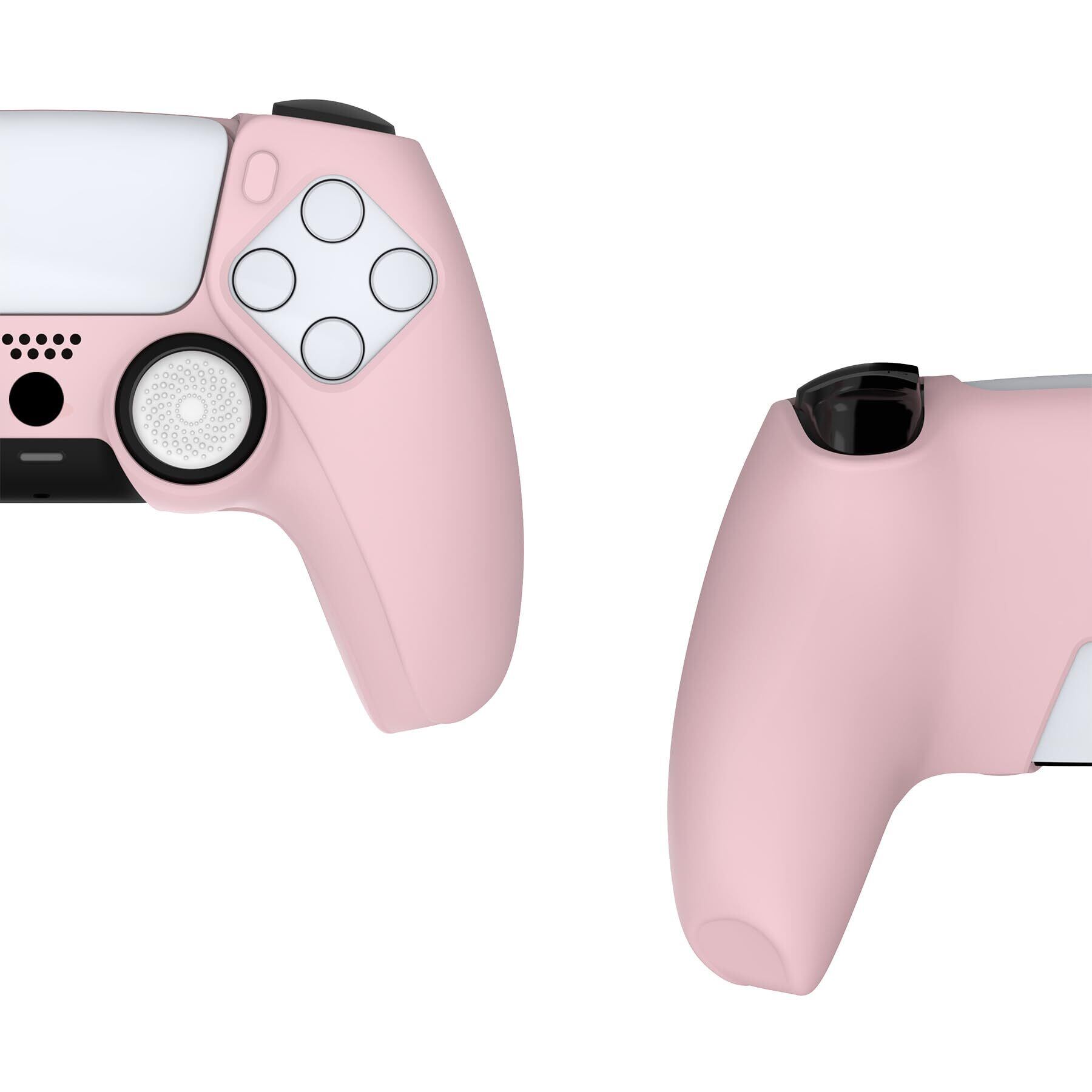PlayVital ピュアシリーズps5コントローラーに対応用保護シリコンカバー、ps5コントローラーに対応用ソフトラバーグリップケースサムスティックキャップ六つ付き、充電スタンドに使用可能【ピンク】