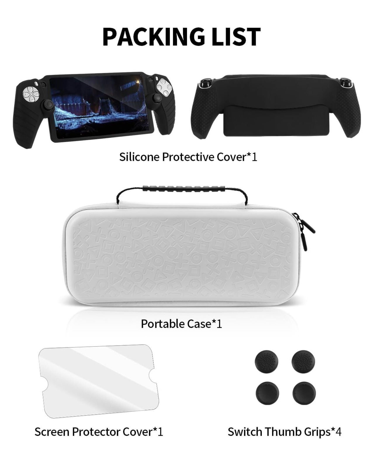 【8 in 1 収納ケース】PS Portal 用 ケース アクセサリー セット内容: playstation portal 用 ポータル ケース 1枚+シリコン保護カバー 1枚*1+クリーニングペーパー 1 枚+ジョイスティック 保護カバー 4枚+スクリーンプロテクター 1枚。旅行に便利なソリューションを提供する強力なセットです。