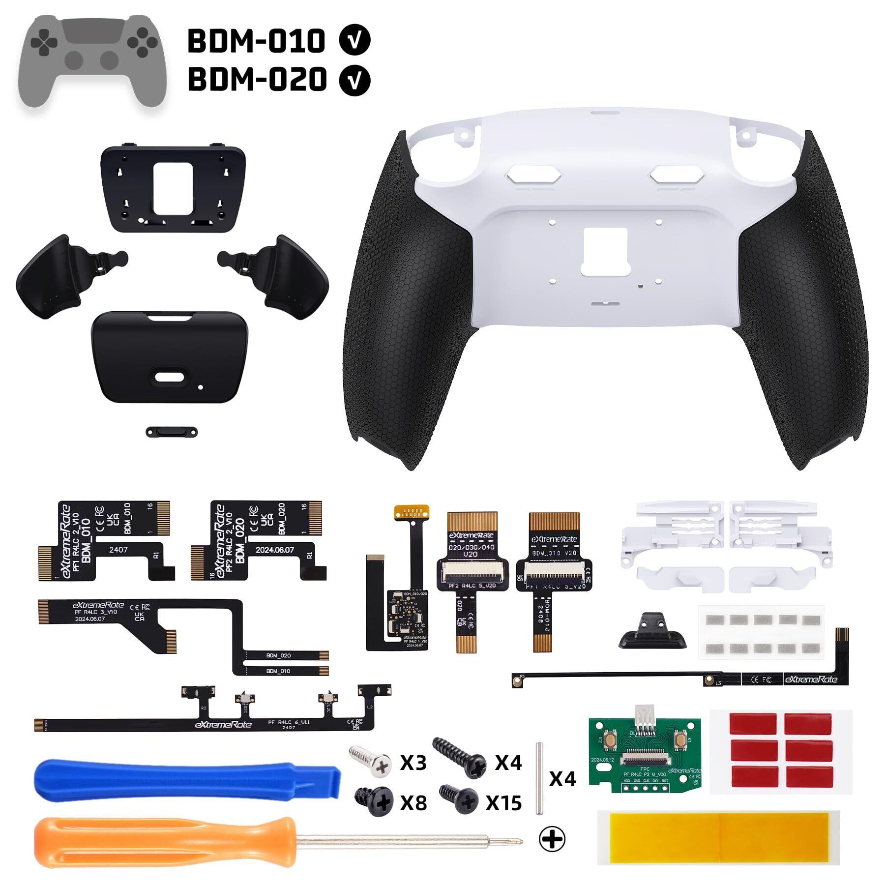 eXtremeRate ps5コントローラーBDM-010/020対応RISE Plus MAXバックパドルキット、クリッキートリガーストップ&ラバーグリップ付き、ps5コントローラー対応用リマップ可能な背面ボタンキット-コントローラーは含まれていません【ホワイトブラック-ブラック背面ボタン】