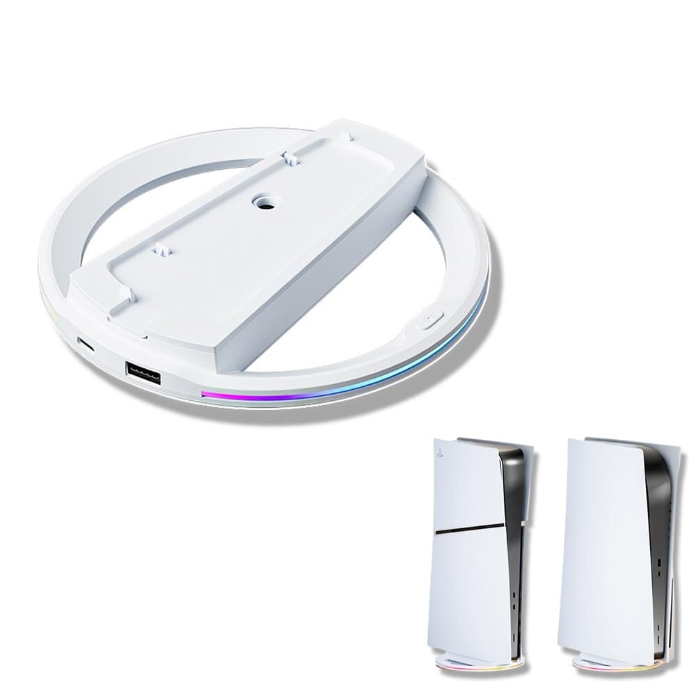 1【PS5/PS5 Slim本体対応】このPS5/PS5 Slim縦置きスタンドは、PlayStation 5およびPlayStation 5 Slimコンソールに完全にフィットするように設計されており、余分なスペースを占有することなく安全でバランスの取れたセットアップを保証します。スリムで整理されたゲームエリアを求めるゲーマーに最適です。 2【梱包内容】丸型滑り止めベース×1、接続プレート×1、ネジ×1、USBケーブル×1。 3【ダイナミックなRGB照明】ワンクリックでオン/オフおよびサイクルモードオプションを簡単に制御でき、USBインターフェースを介して便利に電源を供給します。特に夜間のゲーム中に没入感のあるゲーム雰囲気を作り出すのに最適です。 4【強化された安定性】滑り止めシリコンリングと頑丈な固定ネジを備えており、コンソールをしっかりと固定します。高品質のABSプラスチック製で、耐腐食性、耐高温性があり、不快な臭いを発しない優れた放熱性能を提供します。長時間のゲームセッション中にコンソールの性能を維持するのに最適です。 5【取り付けが簡単】新型 PS5 slim ディスク & デジタル版対応のインストール手順:1.ps5 Slimライトベースを直接ネジでps5 Slim本体に固定し、2.ベースのUSBインタフェースを本体に差し込んだ後。(旧版PS 5はPS 5底面カバーをライトベーに取り付ける必要があった)。